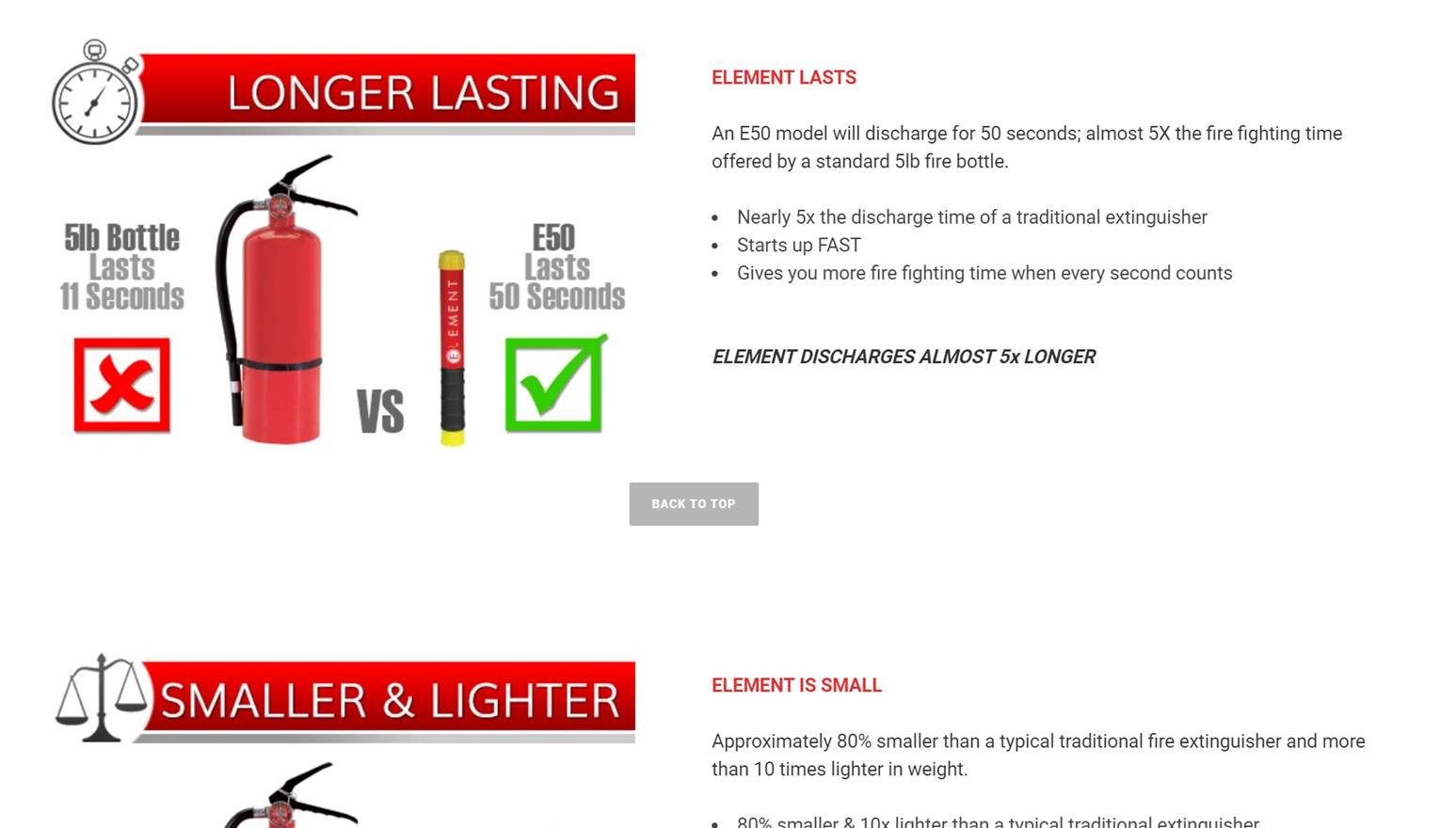 The Element fire extinguishers posted earlier are significantly smaller and disperse for a longer time than all the ones shown so far. Their size makes it much easier to mount or store.