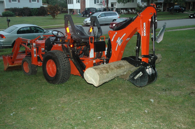 I have used the bucket of BX24, used little dump cart, and found none to my satisfaction. Dump cart is too long, and it suxs when ground is wet, making ruts. The FEL is good enough for a few days worth of wood so a few trips is needed. I have been meaning to make little pallets with tall sides to carry wood with to pile in ahead of time but first I need to make 3pt forks for it. This summer I made "clamp on forks" to FEL and I will test it this winter to see how well it works carrying more wood.