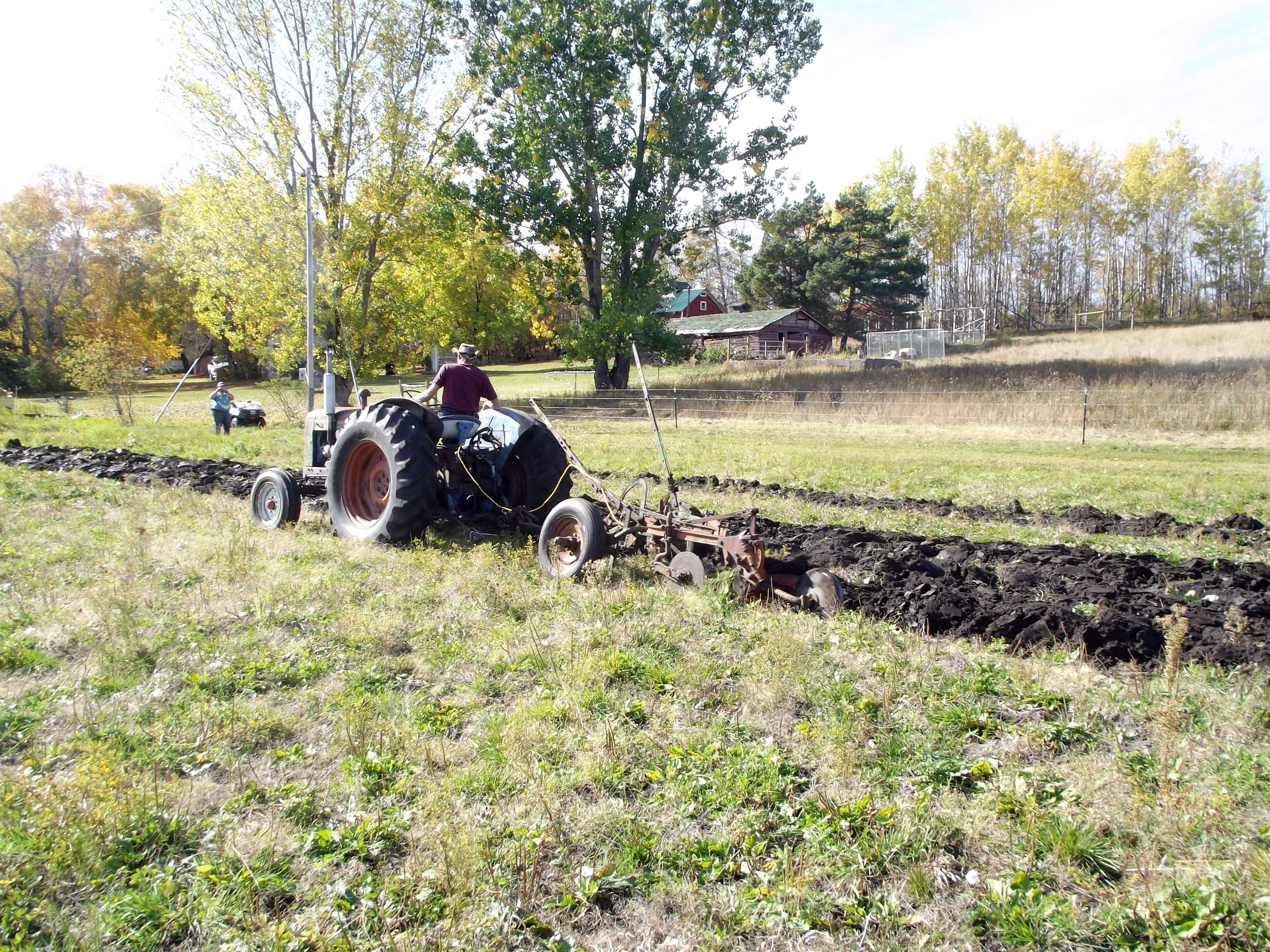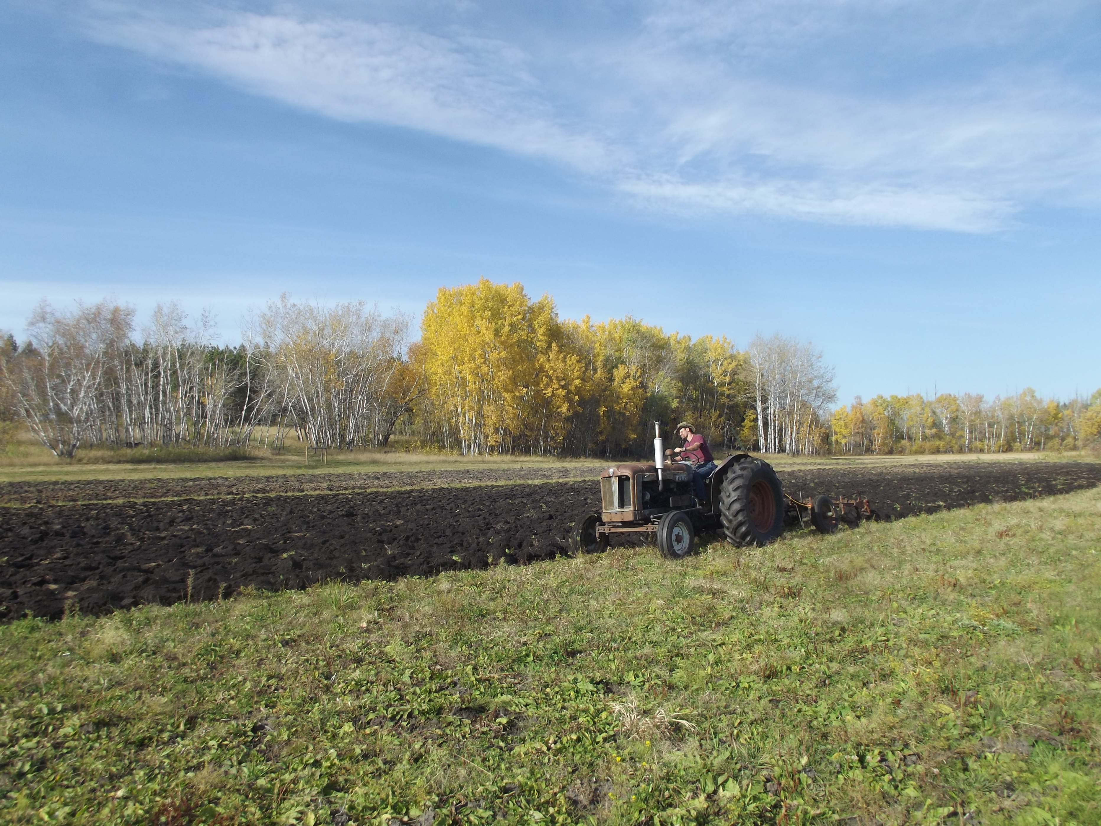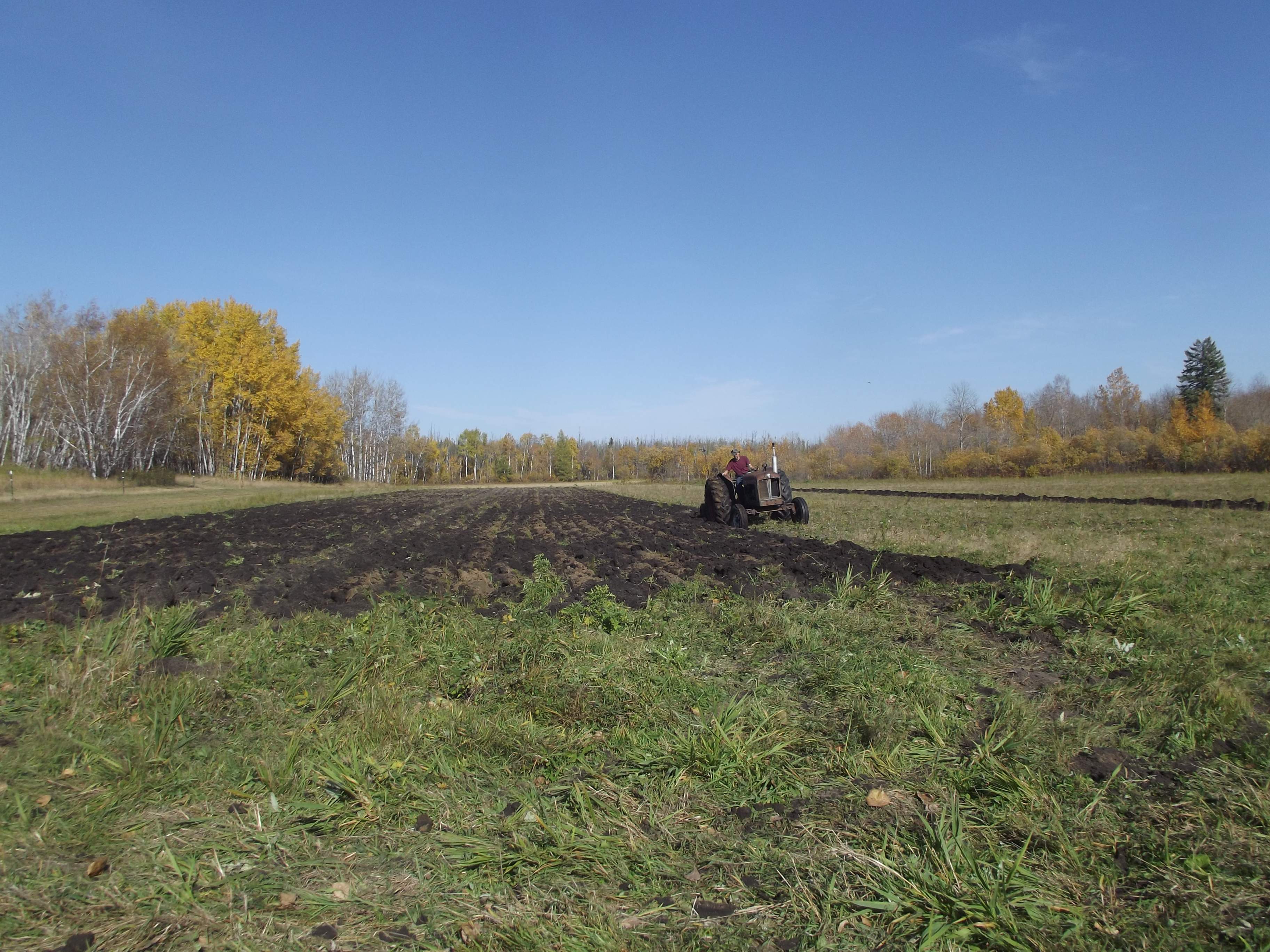 The old Major did a stellar job pulling the 3x14" moldboard through the damp, heavy soil. The only time I had any problems was when I caught a willow root on an outside pass. I backed up, raised the plow a couple notches and went over it. I did the bulk of my little two acre field today and I'll finish the weird little dogleg and the headlands tomorrow. Meanwhile, a few pics for y'all to critique.