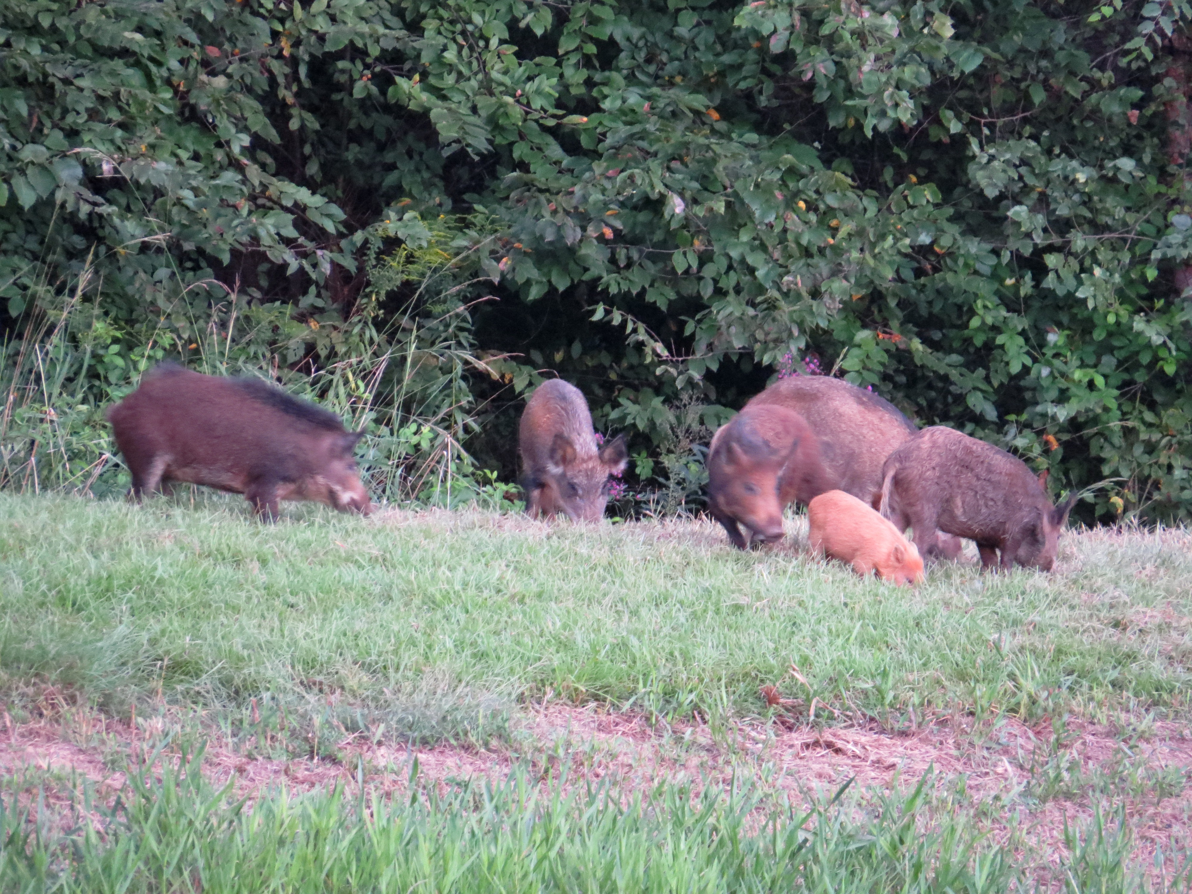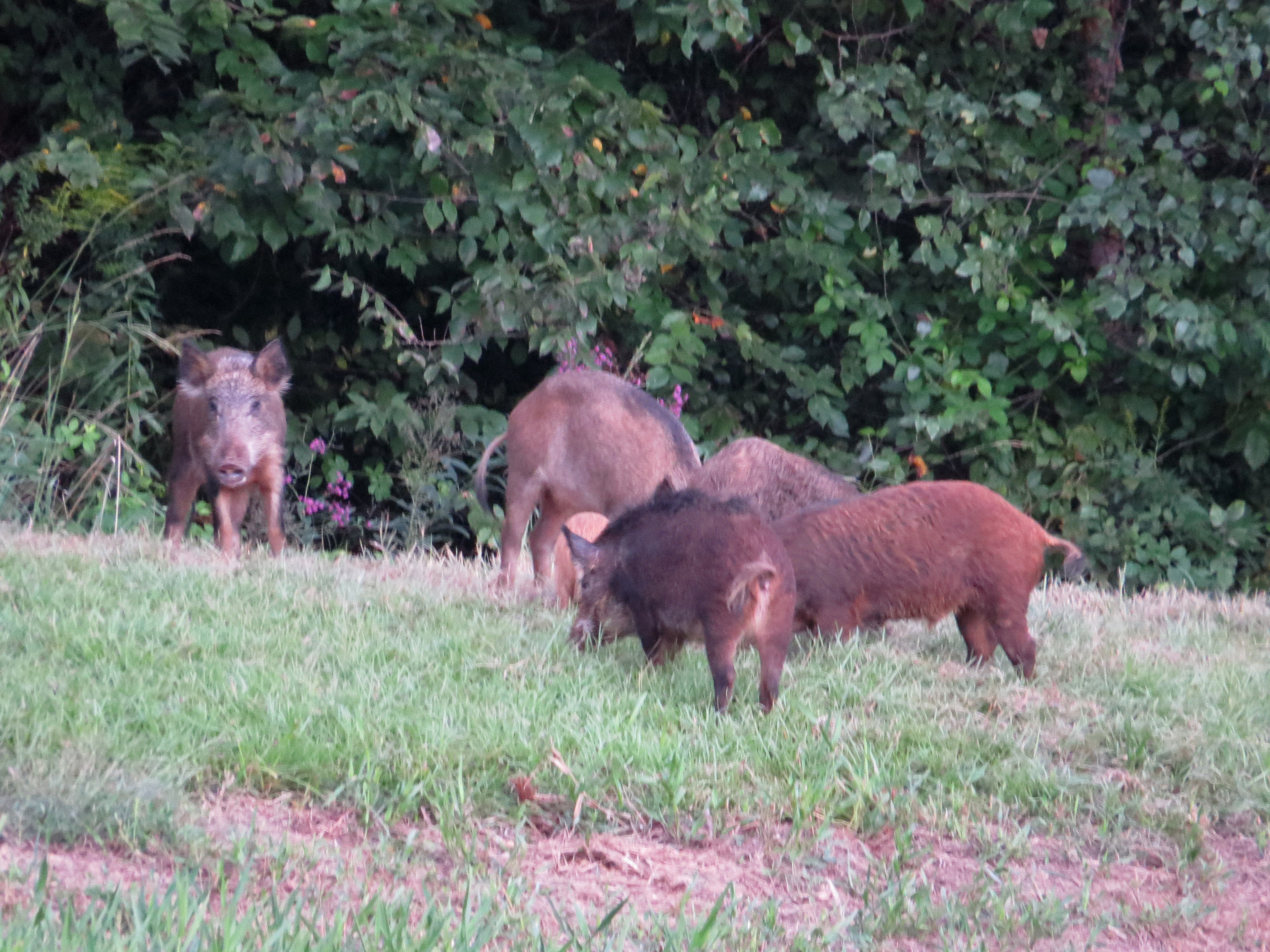 Not really. We where fishing at the pond this evening and this group of six wild hogs showed up on the dam. I'm sure the grass will be all tore up there, but at least it was fun seeing them.