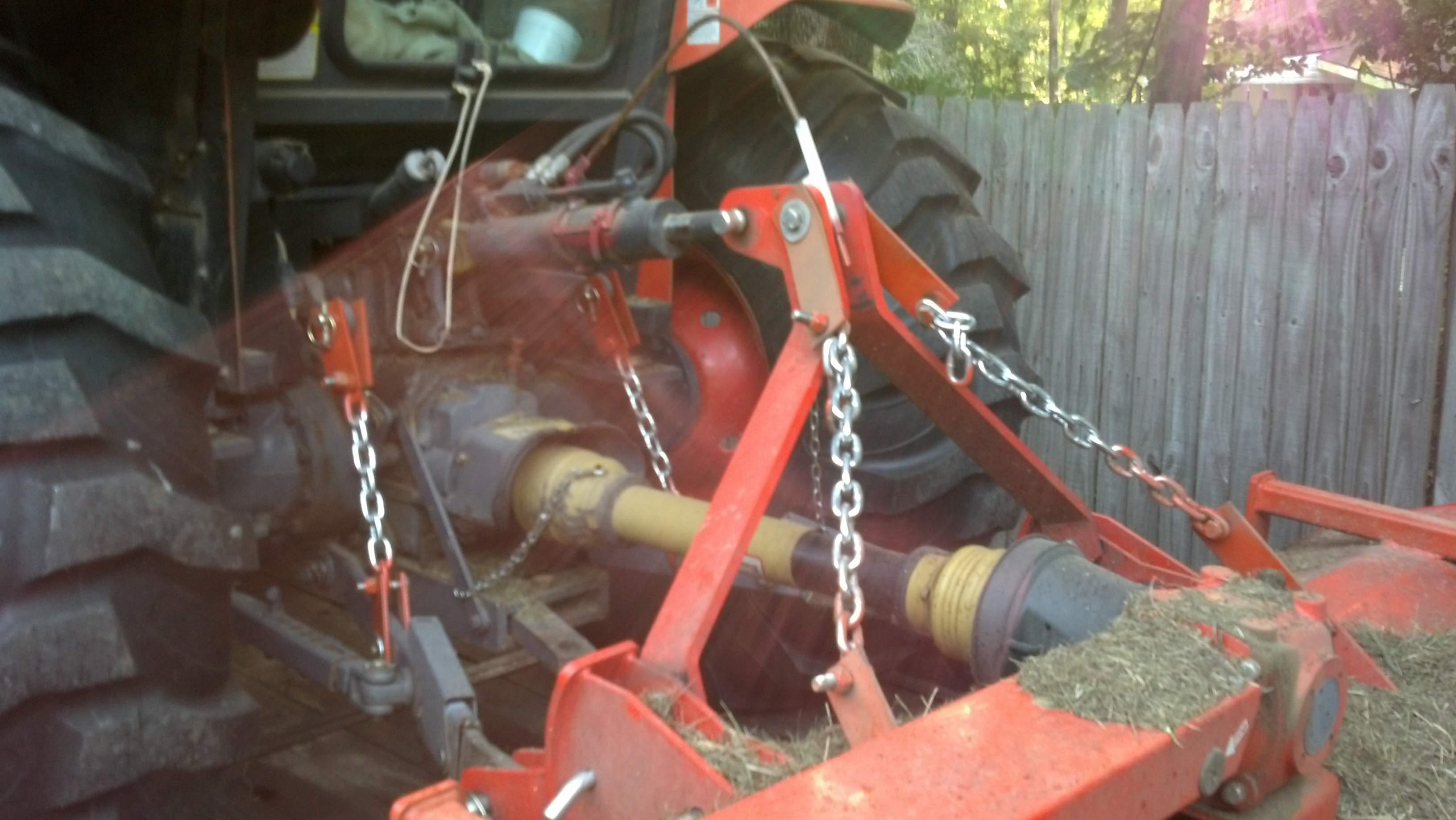 Adjust it like a rototiller with the gearbox level and use the roller on the back to set the cutting height. It should have skid shoes as well but shouldn't really ride on them all the time. You could use the top link for a little more adjustability. Have the 3 pt. arms level from one side to the other. No need to use chains on it for 95% of mowing jobs. Missing knives, expect the two very end one's will cause the cutter shaft to be out of balance and may make it vibrate. Unless it fits a quick hitch, there's not much you can do to make it easier to mount. With practice they aren't too hard to mount. You stole that mower for $200:cool2: Why not get used to it before you look for a smaller one? Just make sure to run it at 540 RPM like it was designed for.