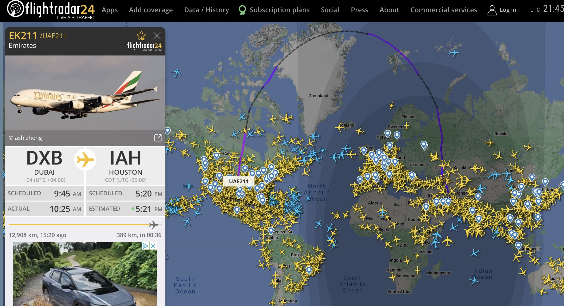 Yep, it is EK212 from Houston to Dubai. I have been stalking, errr, ah, following, them for the last week or so, if I remember to look at the website in time.