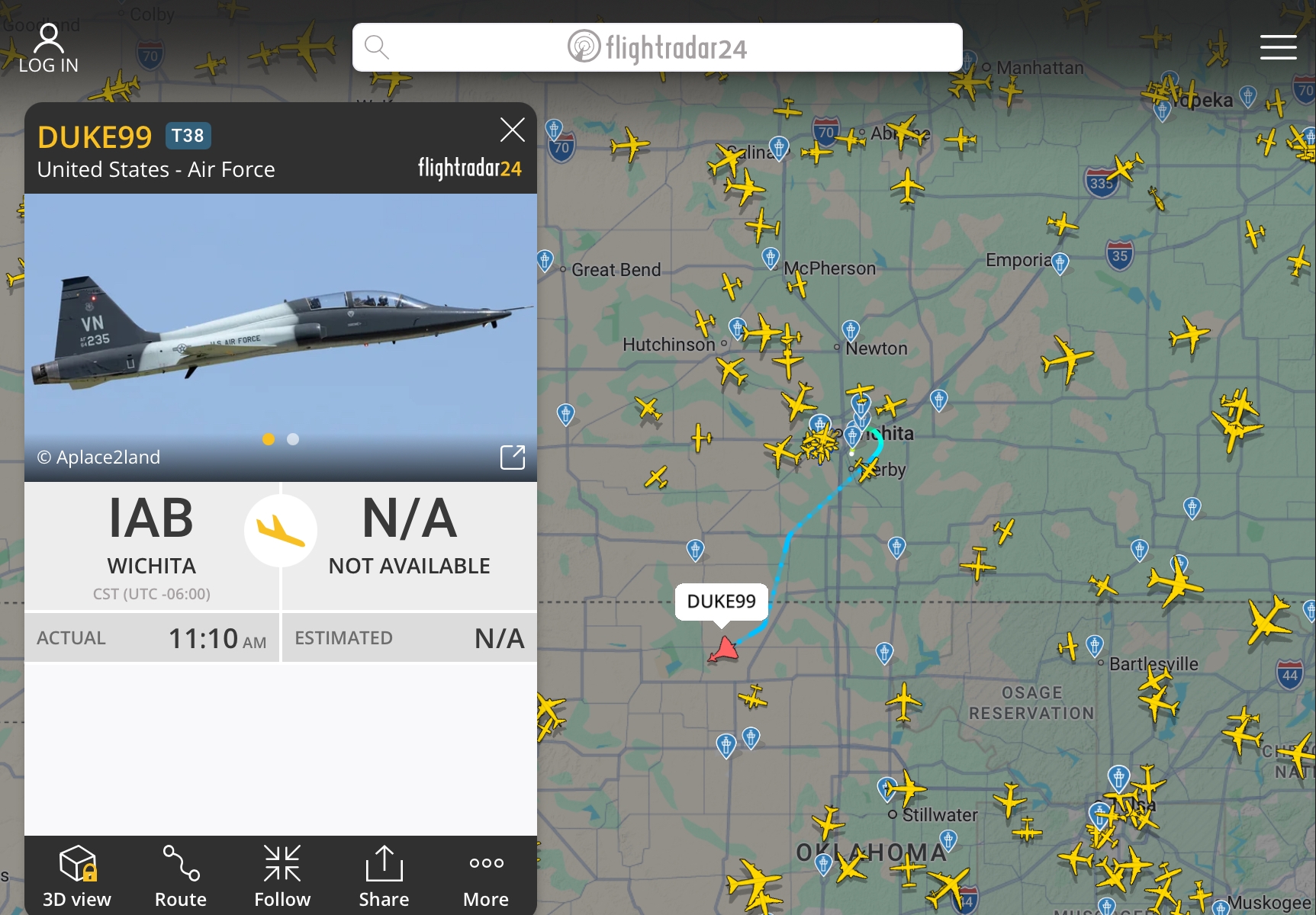 I "see" them over and off the coast of NC frequently. The T38's seem to be USN flying offshore from the Nortfolk area. The KC135's I assume are refueling the the T38s and unseen fighters. I never see fighters pop up offshore. I have seen F35s, I think they are USMC, and Harriers pop up in airspace that has quite a bit of traffic. But they pop up and then disappear. Never seen F15 at all even though some are based in NC.