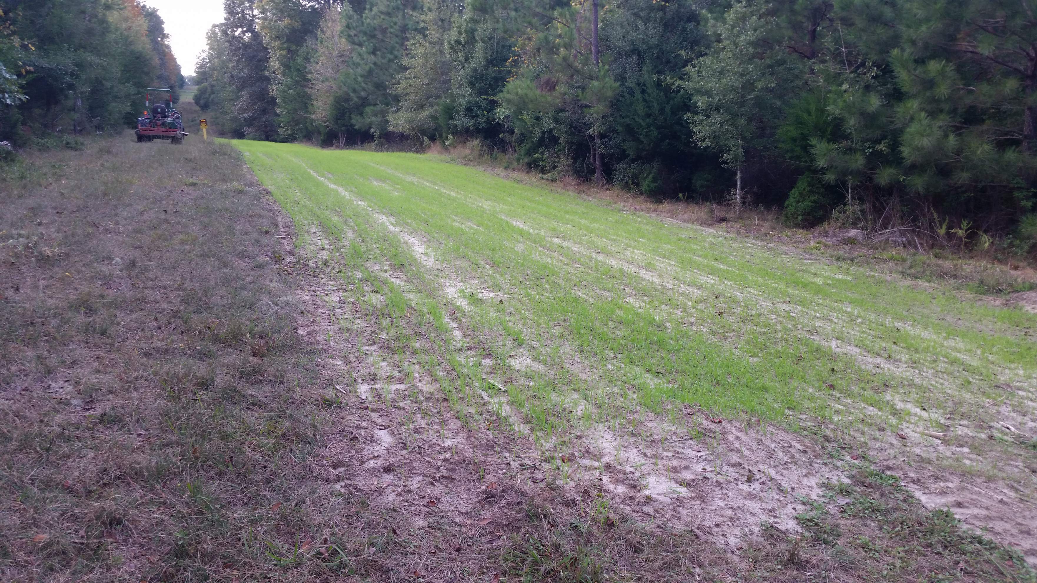 Thought I would post some updated pic's I took last Saturday of the same food plot I put in about three weeks ago. It's coming up nicely after all the floods we've had here in SC the last couple weeks. Here at my house in Lexington, I've had about 24" of rain over the last three weeks! In the upstate where my plot is it got about half of that over the same period.