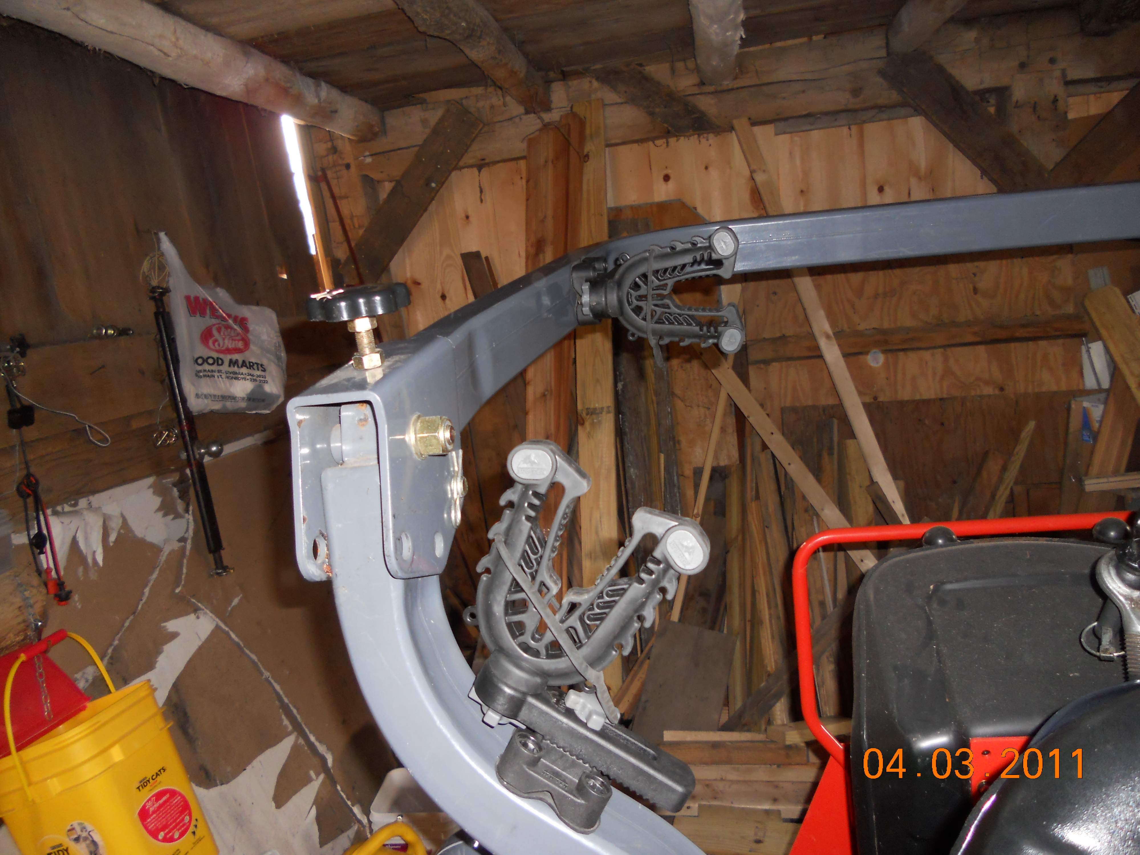 Here, finally, are a couple photos of the crude but effective shift lever mod. One bolt, 1 piece of old round mild steel rod from an old concrete silo for the T, 2 nuts welded together end to end, & one jam nut. If I had it to do agian I'd shorten it by maybe a half an inch.