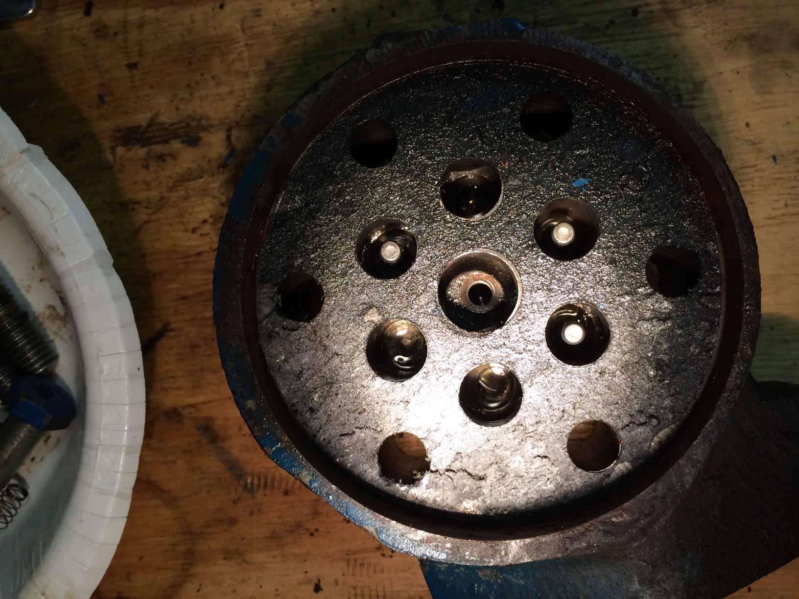 A few of the cages were bent but the thing that was bizarre is that a few of the pins were missing and the few remaining seemed to be part of the housing (36). I could not remove them. The holes that didn't have pins had no slot for any pins to slide into. Anybody understand why this is? The manual seems to make it show as six identical setups in the cylinders. This is all on the outlet side of the pump. The pump was working before but was a little low on power lifting with the 3pt, but then again the lift cylinder didn't have rings on it (it does now). It seems that without the pins the springs will fall out or the bearings would get pushed too far down.