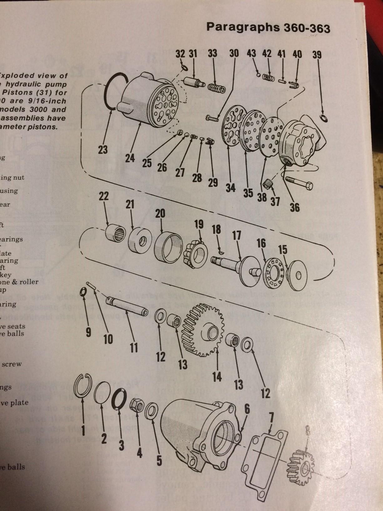Wanted to see if anyone could answer a question I have related to the hydraulic piston pump on a ford 3000 (1965). It started when I went to prime the pump and loosened the priming plug (part 37 on the picture) per the manual. When I did so I had a spring fall. I took the pump apart and the spring that had fallen out was one of parts #42. On the diagram it shows the bearing (43) sitting on the spring (42) with a pin (41) to ensure the bearing stays in the slot all housed within a cage (40).