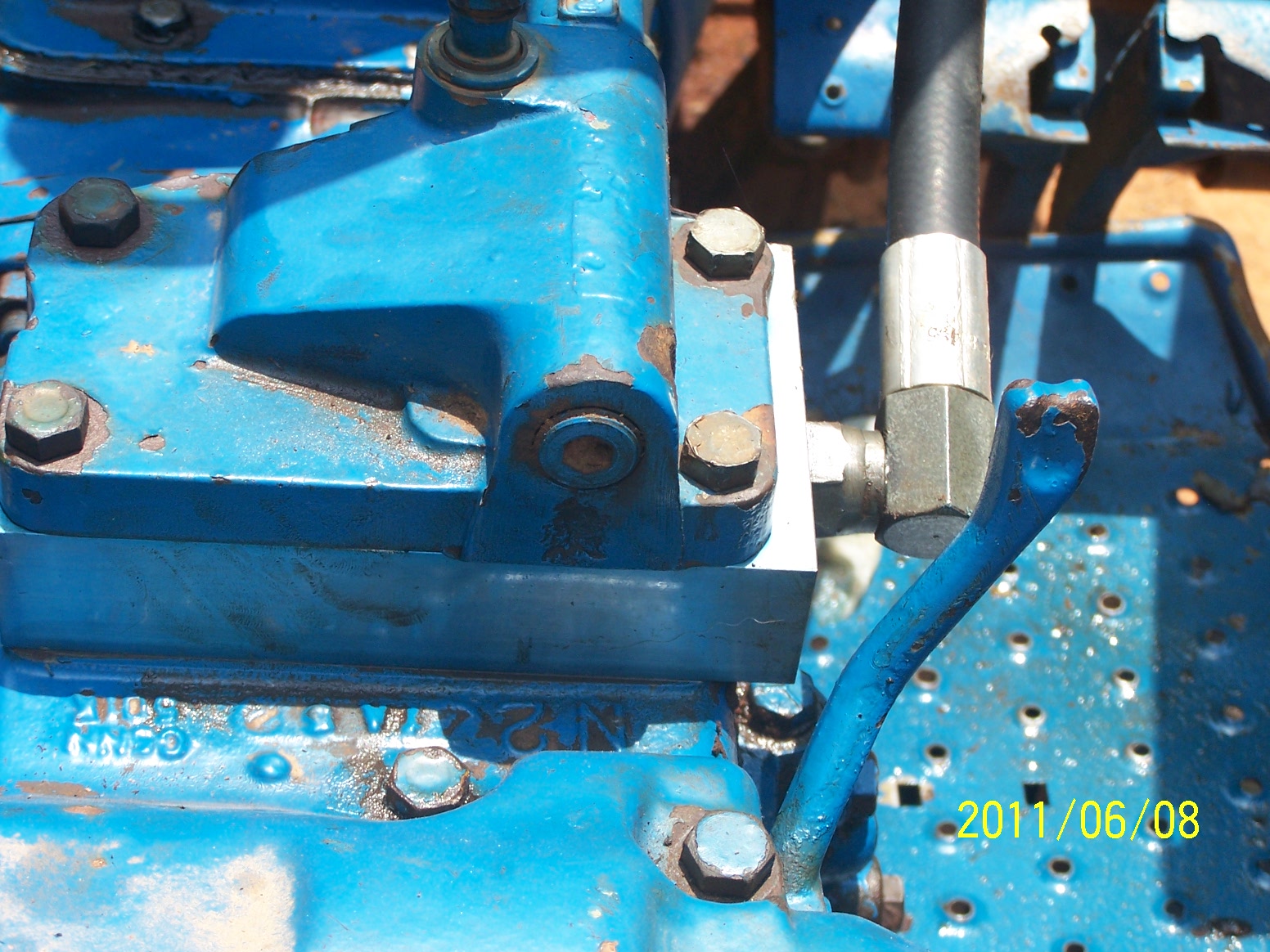 I've got a '71 Ford 4000 tractor with a bush hog loader. My problem is that the hydraulic lines for the loader hook up under the accessory cover on the front and the side. The side hose is in the way of my draft control lever. I can't push it forward to put the tractor in draft mode.