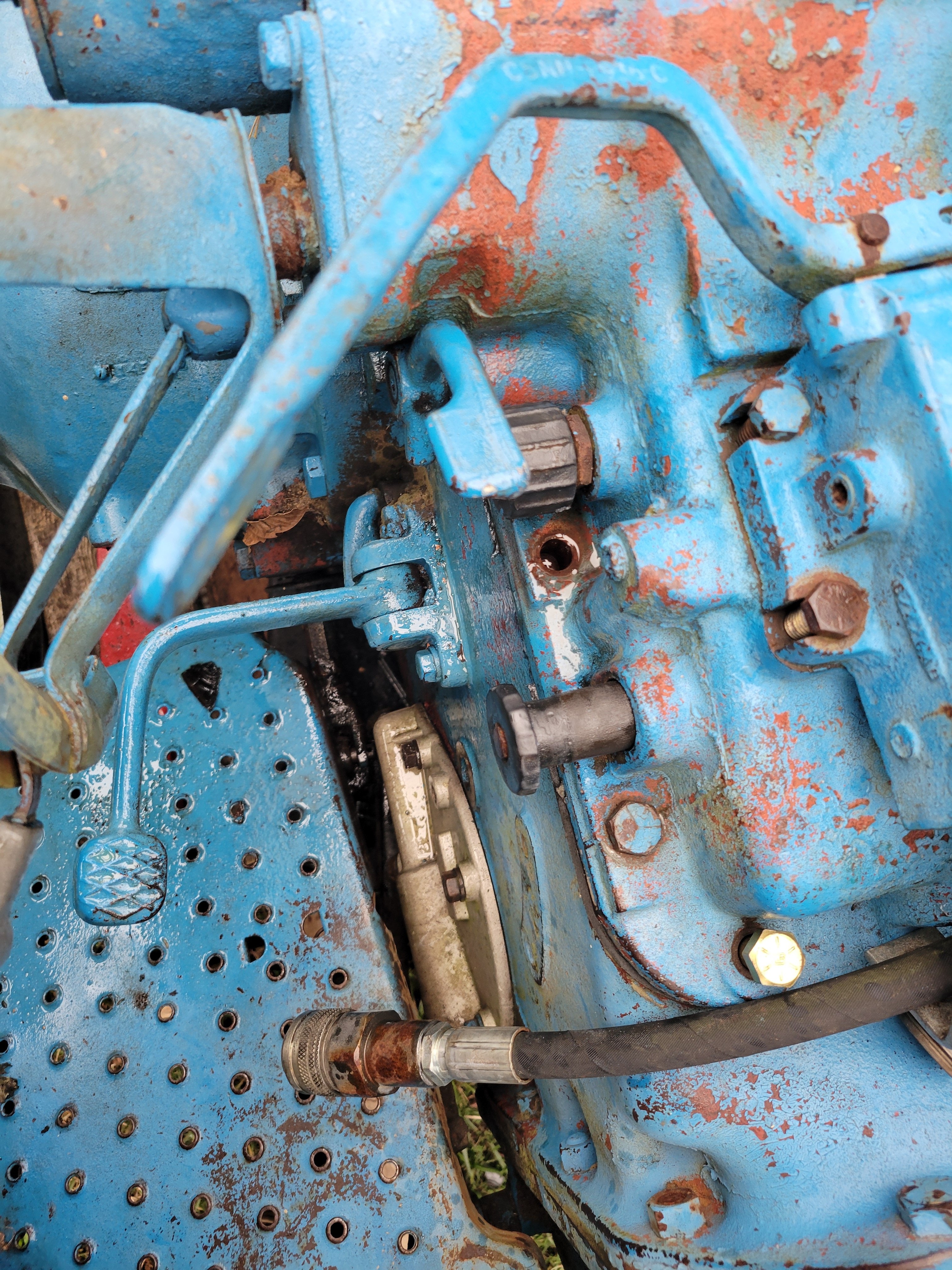 I replaced the oring with one from my SAE Orion set. It seemed to fit pretty well. I really had tp wrestle with the top cover to get it back on. I dont have any concrete so I use deck boards on the ground between the rear tires to roll the hoisting around. Its an imperfect system. I also struggled with the hoisting aspect, getting the chain even lifting right? It always comes off easier than it goes back on lol. I tore my gasket, but still set it down and used a few punches as guides to set it on the o ring. This would be much easier with a second person. After I set it down I only put a few of the bolts in because I knew I would be taking it off again to put on the new gasket. I did not attach the top lift/ram arms to the bottom lift arms. That was a bit short sighted on my part. I fired it up and the top lift arms went straight up! They didnt come down but they had nothing to pull them down. I pulled the selector to make sure the rear remotes had flow. I hit the lever and heard the pump start working. Stupidly, I didnt think about the end of the remotes having fittings on them. So I didnt depress the pin inside and dead headed the pump. Then the o-ring tried to launch into outerspace. Oil shot out of the empty bolt hole beside where the oring goes. Im still taking this as win. I have another top cover gasket and o ring. My only concern is that the lift arms didnt go down. Once I turned the tractor off I started pushing them down and they went as far down as the lever was set. So if I pushed really hard on them they would go down and stop. I would move the lever down more and they would go down more. I could hear fluid emptying into the sump when I did this. Since the cover is comming off yet again, I just want to make sure thats normal and I dont need to go ahead and plan on adjusting any of my controls. Tbh, I'm not really sure how to adjust them. Attached picture of where the fluid shot out, more for your amusement than anything.