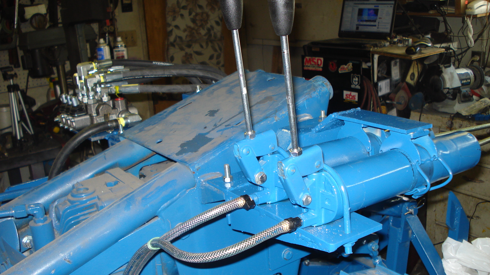 All front hydraulics are installed and tested. Travel speeds are good, and faster than I expected from an automotive power steering pump. Test motor was 1/2" electric and everything worked fine.