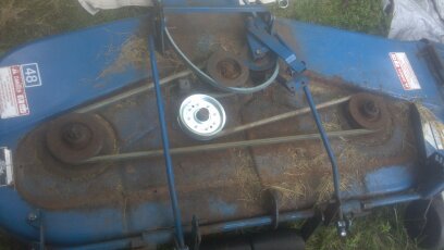 I need to replace the blade drive belt for my 48" mower deck. I went to my New Holland dealer and got the correct belt. I can't get it on. It seems too short. I have it on the drive pulley and around the reversed pulley (whatever that is called) and then the long distance to the last pulley but it just barely goes over the nut let alone the pulley itself. And yes I have it in the correct order. Is there a trick to putting this on?