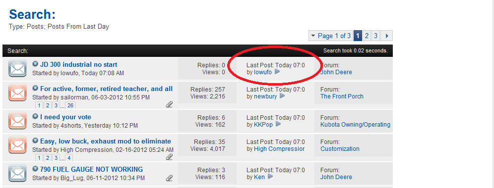 One more thing I noticed was under a post, it has "started by -member name" and then "date when created.."