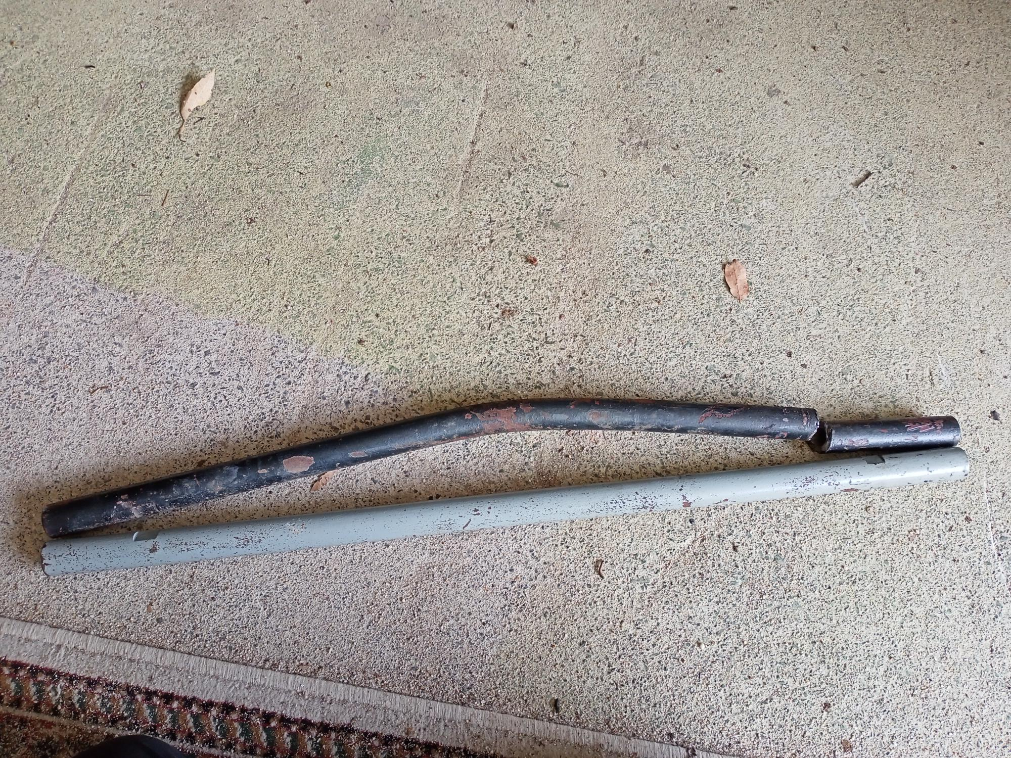 In theory, because of the LH thread on one end and a RH thread on the other it should be easy to remove. The bend in it however meant that when turning it, it would not clear the front axle. So, my angle grinder came to the rescue, and I cut the bar into two pieces. Each separate part easily unscrewed as the ball joint allowed the bar to swing clear of the axle.