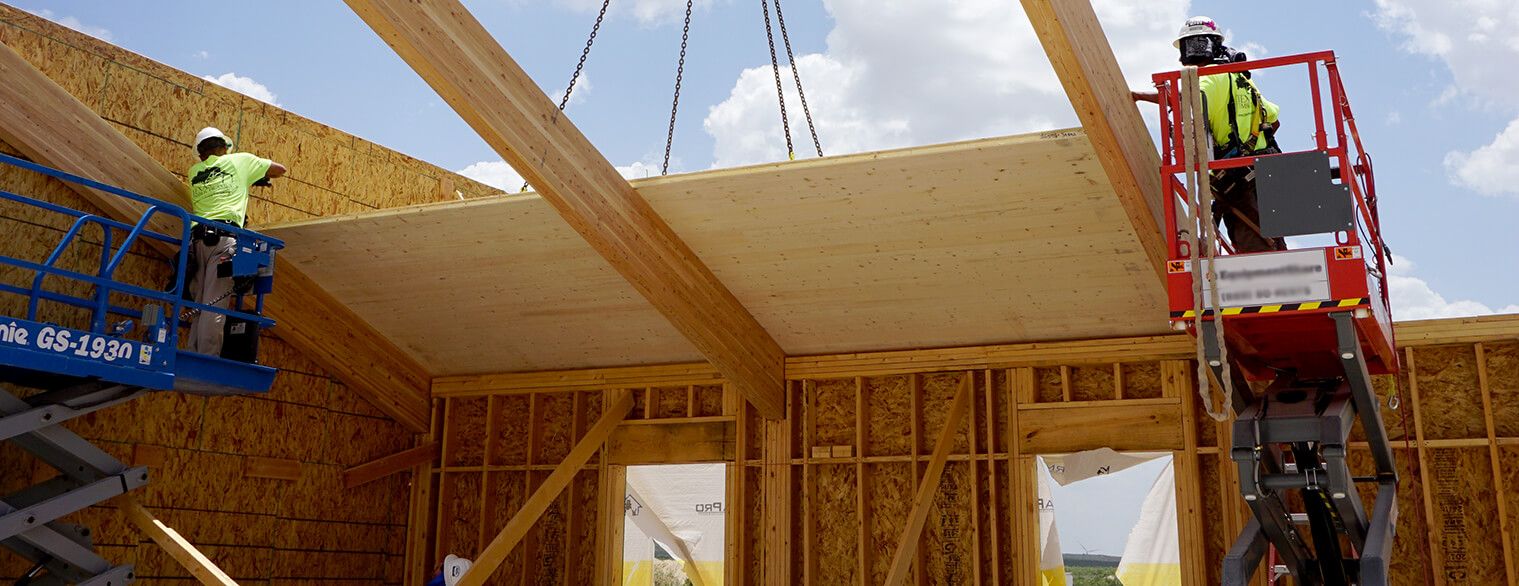 You can't see the width of the building, but it looks like a significant span, which would create significant side-wall loads, particularly in a place with high snow or wind loads. What's weird is that it looks like residential construction using pole barn techniques, where all the weight of the roof is on trusses and the trusses rest on poles. If there were some connector that we're not seeing that transferred the weight of the roof onto the entire wall and the roof were really wide then the wall would make sense.