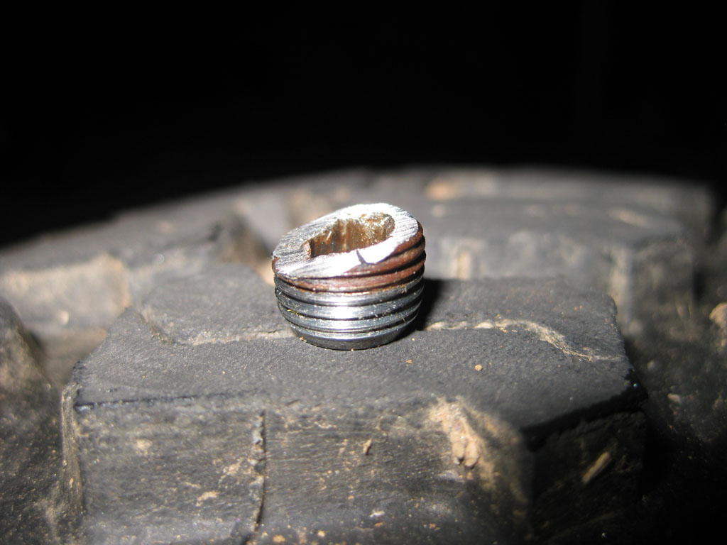 Looks like someone (possibly me) nailed a rock pretty good on the one side. The allen head opening was bent in. I had to cut out the bent part to get the wrench in. Looks like I'll be replacing these.