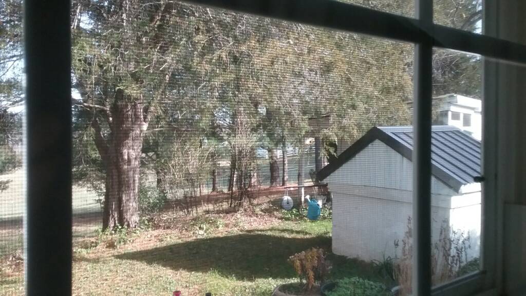 I just took this picture out of a back window of my well house that has a heavy hinged top. I made a counterweight out of iron plumbing pipe using barbell weights.