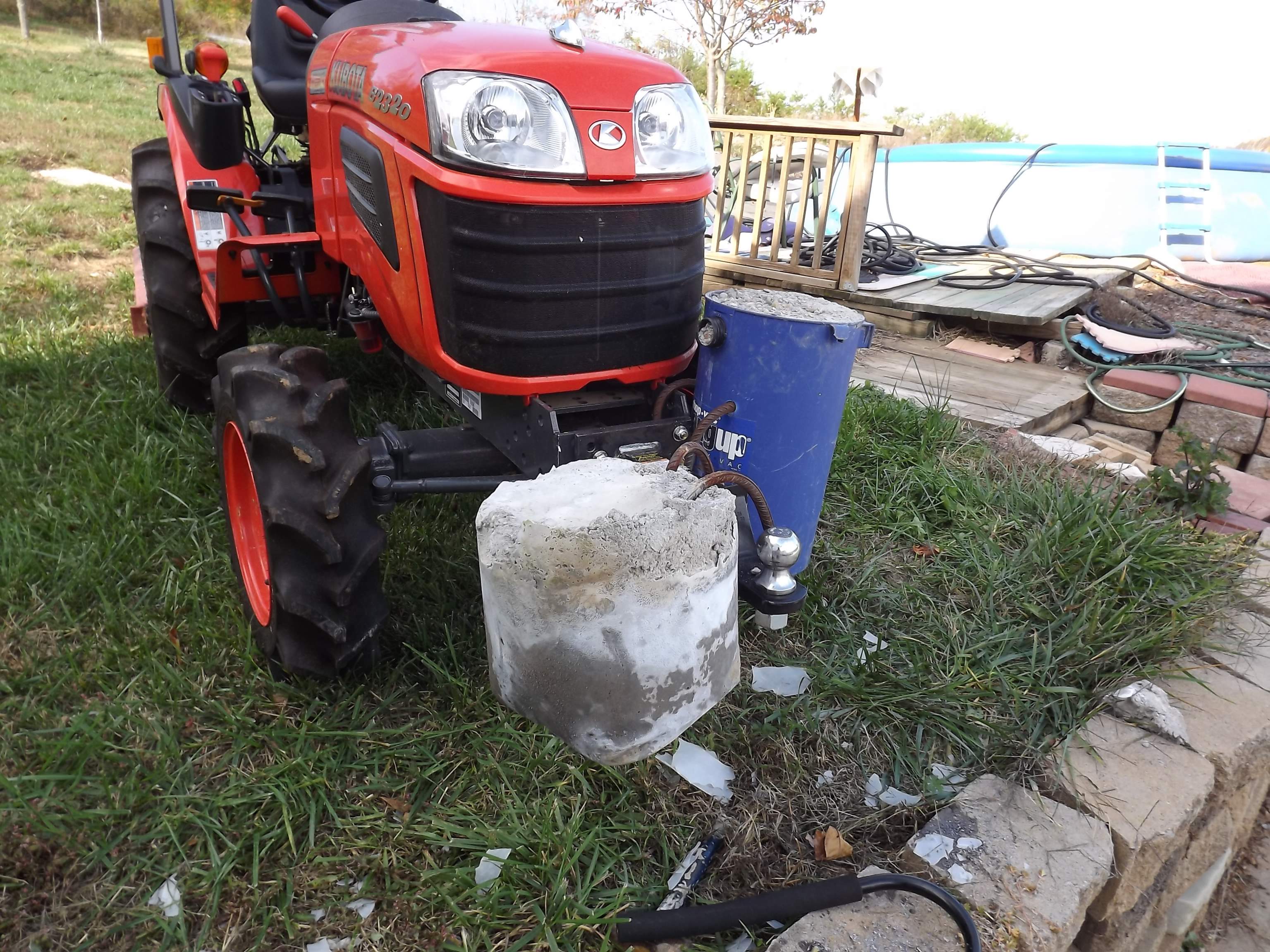 I have lots of hilly terian i use the tractor on and really think the use of front weights would help doing tilling work and bb work. I didnt want to always have the loader attached while doing these tasks. This is my solution... on the cheap!