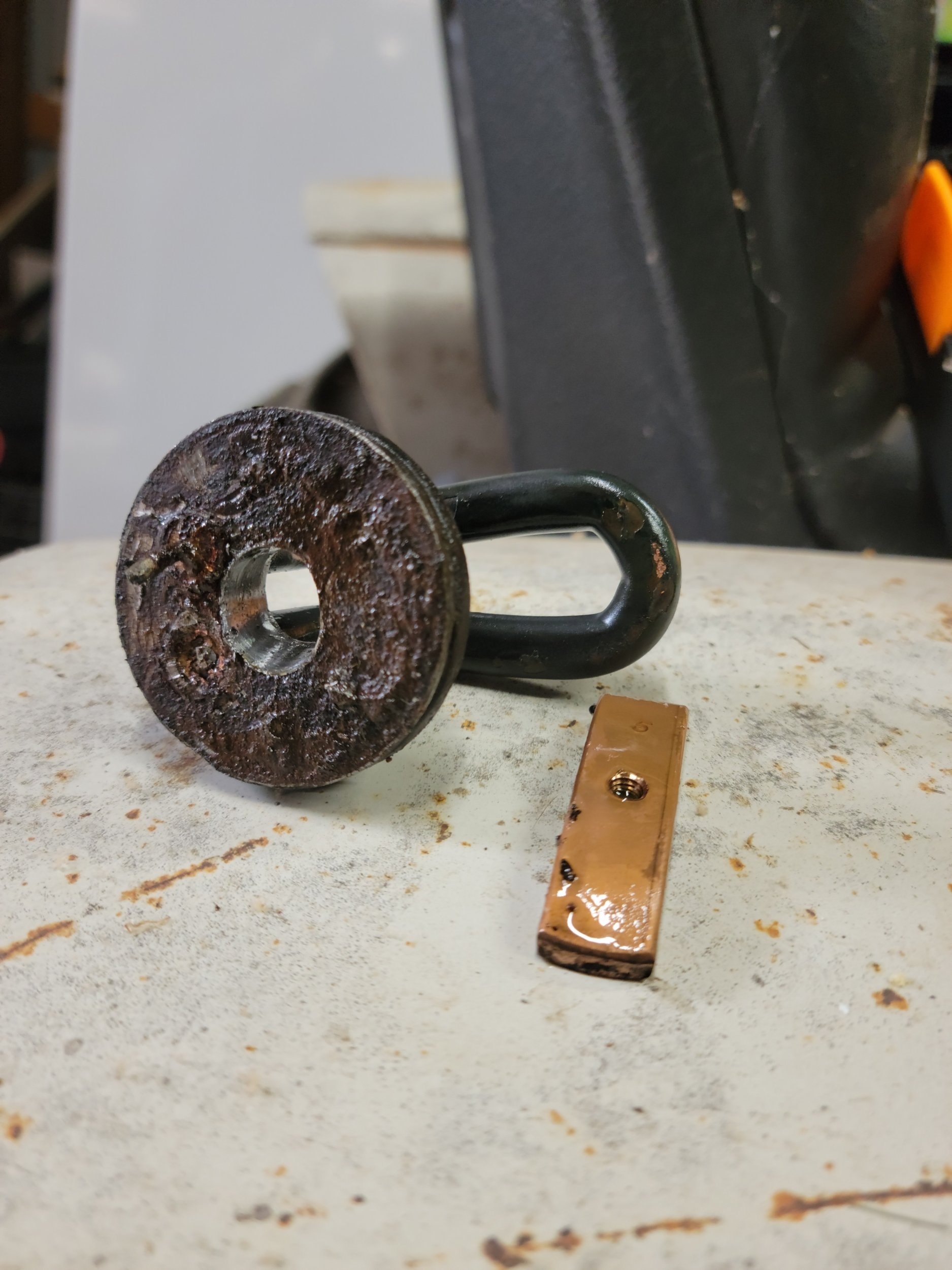 2. The strap with the threaded hole will have a bolt from the outside threaded into it. When you tighten the bolt it compresses a block of rubber between the 2 sides and causes it to enlarge in diameter and basically jam itself in the hole through expansion. Replacements are available at any online tractor parts place, or TSC, etc.