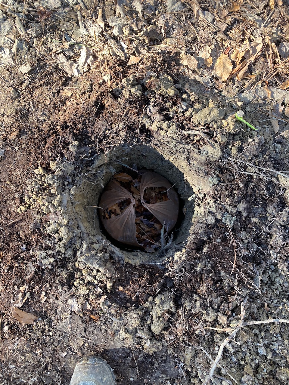 3'x5'x4" pad needed. Temps forecast to be 40s today and tomorrow with low 30s overnight. No major differences for the next two weeks, but rain possibly after tomorrow. Ground is wet from past rains, was partially frozen down an inch or so yesterday morning.
