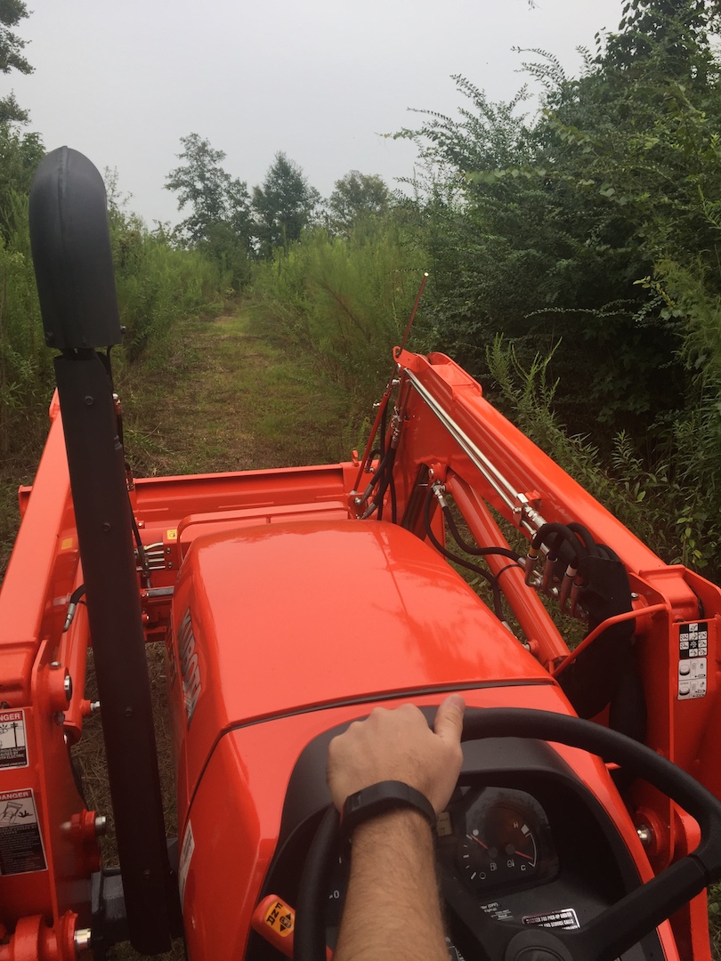 Over the past six months I have also purchased quite a few things to assist in the clearing of the land. I started off by purchasing a truck that has proven to be invaluable thus far. Soon after I purchased a tractor from a local dealer and quickly opted to install a piranha tooth bar for the bucket to help speed up the sheering and cutting off of countless weeds that are taller than the tractor and other invasive brush that was left behind to grow after loggers cut the whole property in 2012. Within the past month I picked up a more than adequate box blade and a grapple which have been fantastic. So far to date Ive been able to clear / mow about 3 acres. Some discoveries along the way included a single wide trailer that I did not even know was on the property long since abandoned and falling apart. A lot of logging debris and trash from their operations.