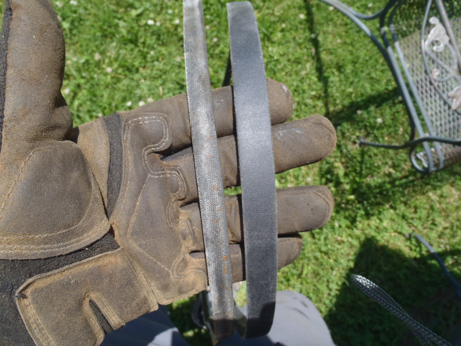 The belt I removed from the mower deck (left) vs the correct belt (right):