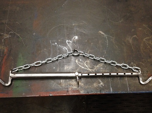 Went to a local steel place that has a lot of recyled steel and purchased what We thought We needed . Some are rated at 300 pounds , while others are rated at 500 pounds . Based upon the size of their tube for 500 pounds , Ours is likely 1000 pounds or better . 2" x .25" wall round tube for main upright and vertical top . Vertical top is also supported by a brace of 4" x 1/2" flat bar , similar to the brace in the picture .