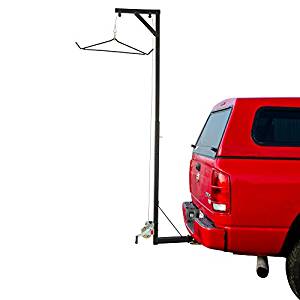 The upright sections rotate 360 , thus once game is lifted it can be swung around to rear of vehicle for loading .