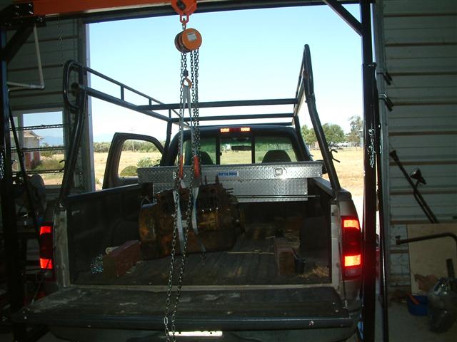 I'm pulling the Hercules engine (27 hp, 4 cyl, gas) in this photo to send to the machine shop for a complete rebuild--no compression on 3 of the cylinders.