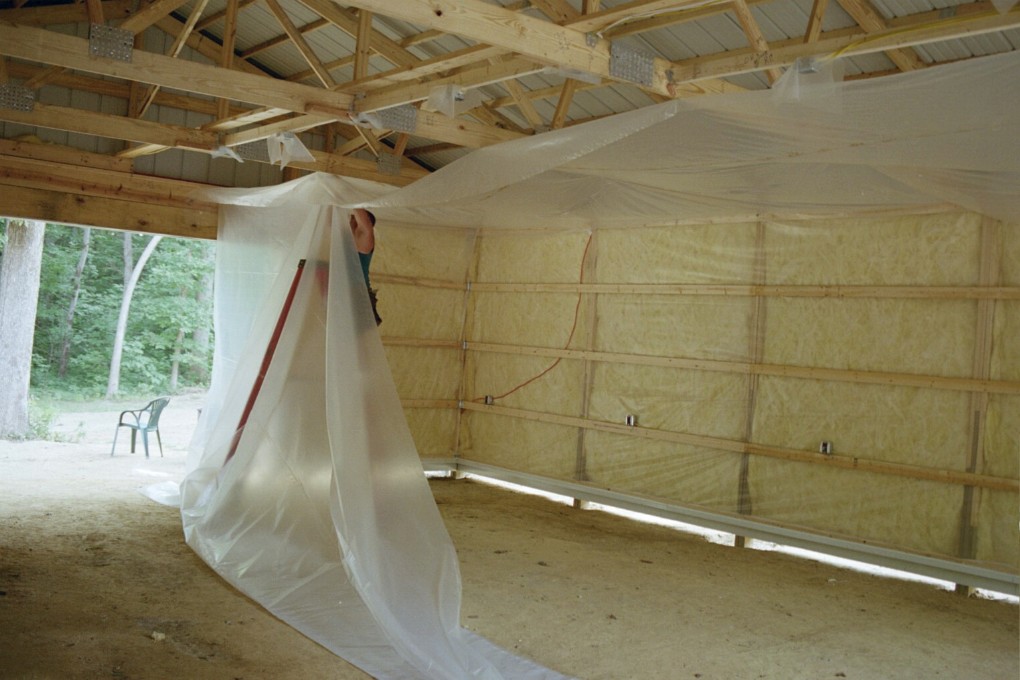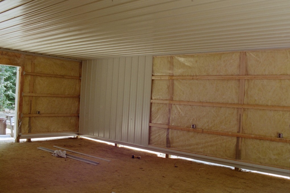 My walls are steel sheeting outside, 2 X 4s horizontally every 2', 6 X 6 posts every 8', R19 insulation, 2 X 4s horizontally every 2', poly vapor barrier, and steel sheeting inside!