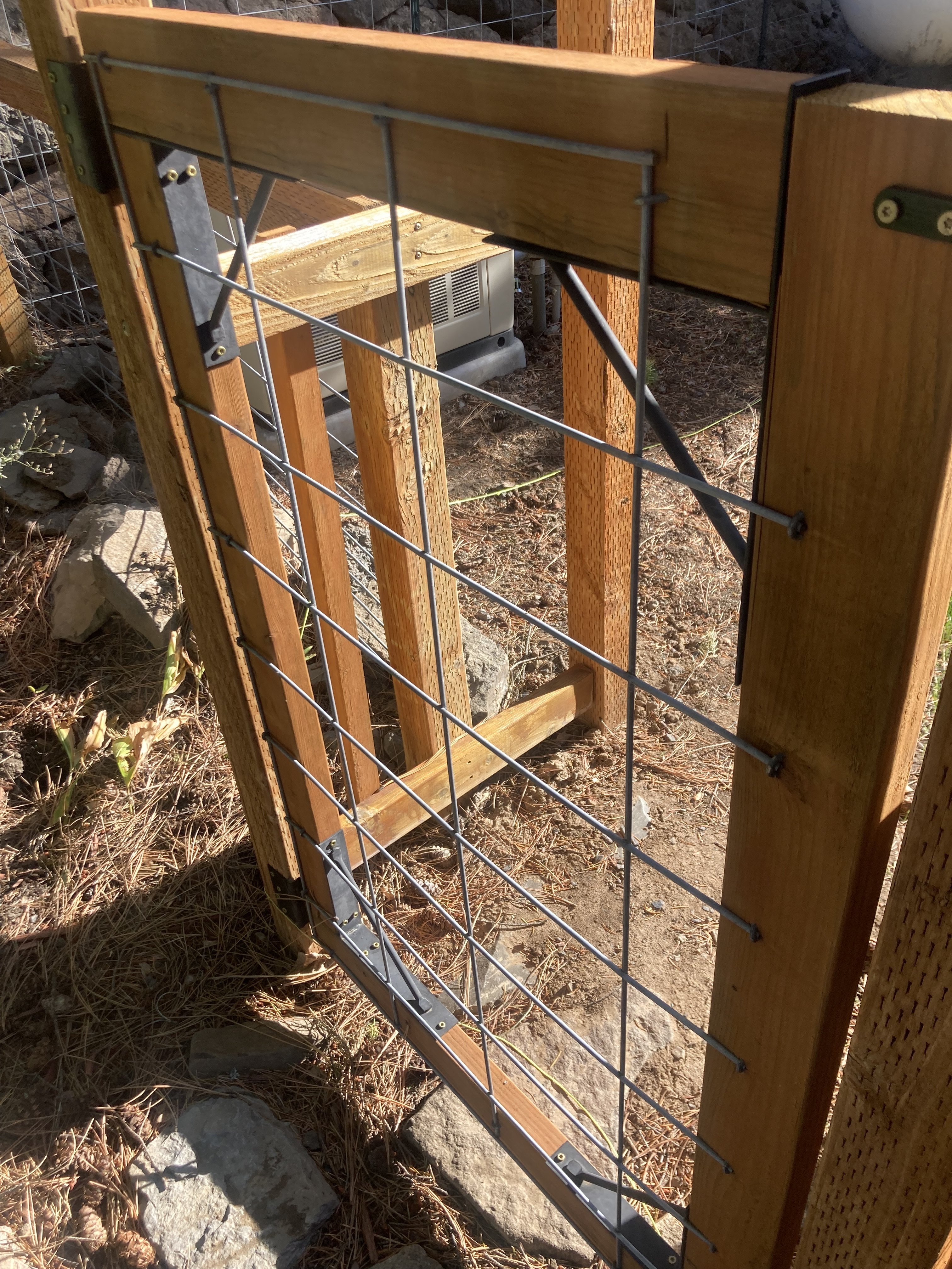 - Rather than have the fence open at the bottom, I'll make a panel with 1/2" hardware cloth for the bottom 12" or so, again trimmed/framed with ripped 2x4s on three sides and buried in the ground on the bottom to protect against burrowing creatures.