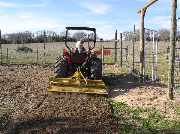 I started off with the 72" King Kutter II tiller and ended with the cultivator. I didn't have the turn areas in the deer fenced area but a little hoe work took care of that.