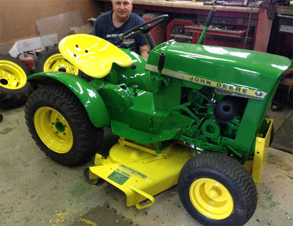Here is a picture of the new addition to my herd. It came with a working mower deck and a nice snowblower. It runs good. I will sand it down and repaint it to get a nice shine on it. I will probably also change the tires and install a vertical exhaust pipe . I restored my first 110 about a year ago and got it to shine pretty good. :thumbsup: