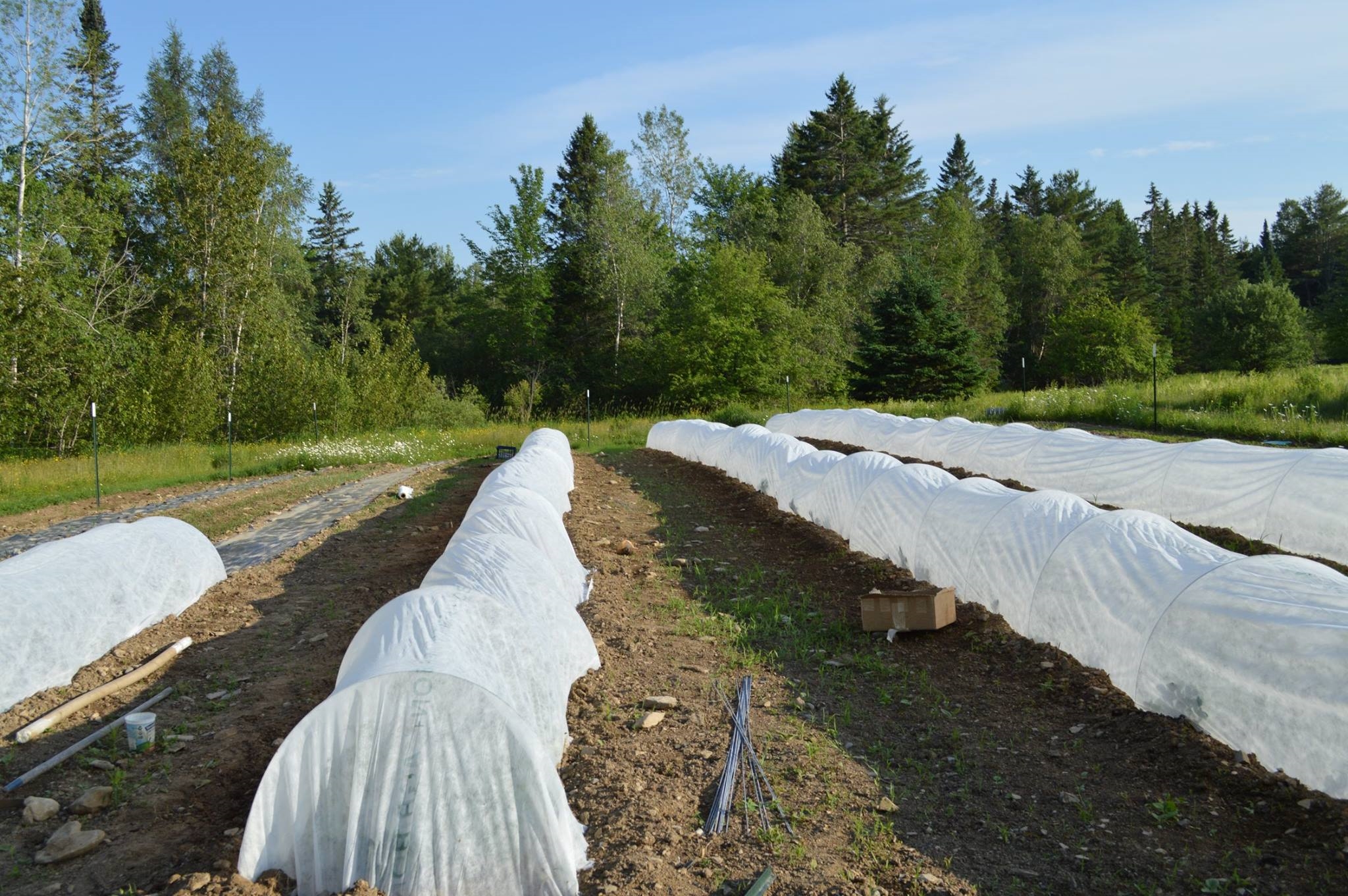 I think this will be a better year. The covers and the hoops come from Johnny seed. We use bio degradable plastic to hold down the weeds.