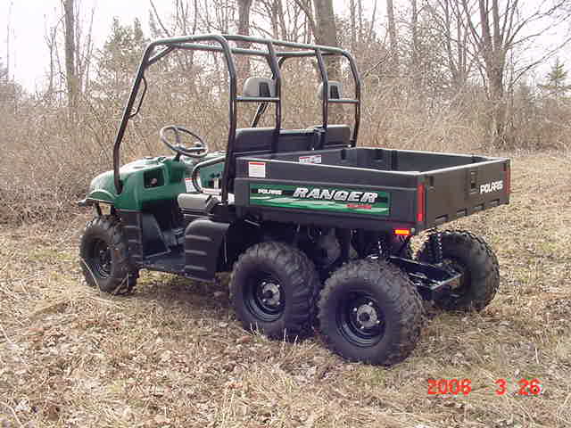 My RANGER 6X6....all 6 wheels get traction. It is a machine go anywhere and very hard working. Top speed 40 mph is real fast on the trails.