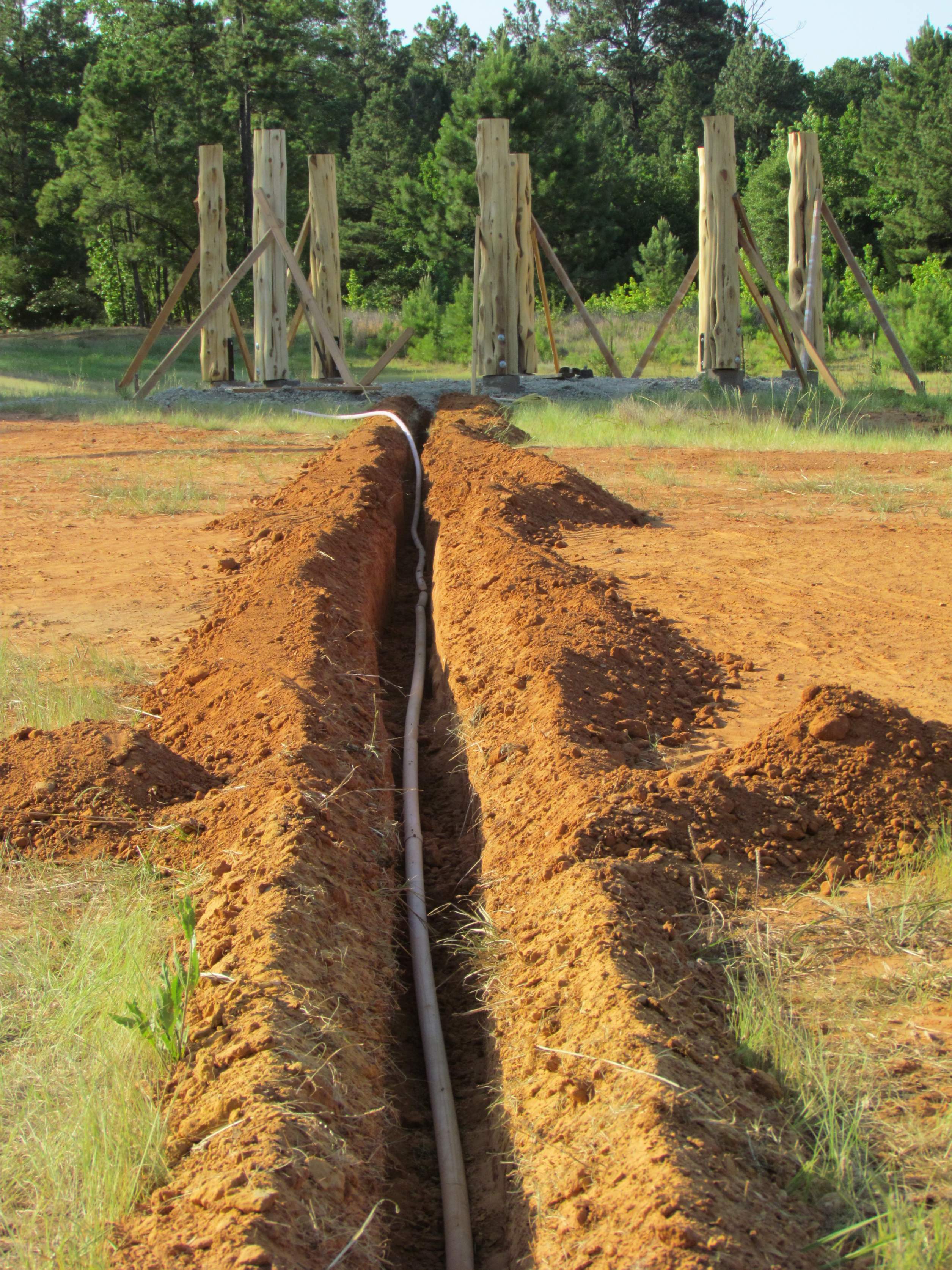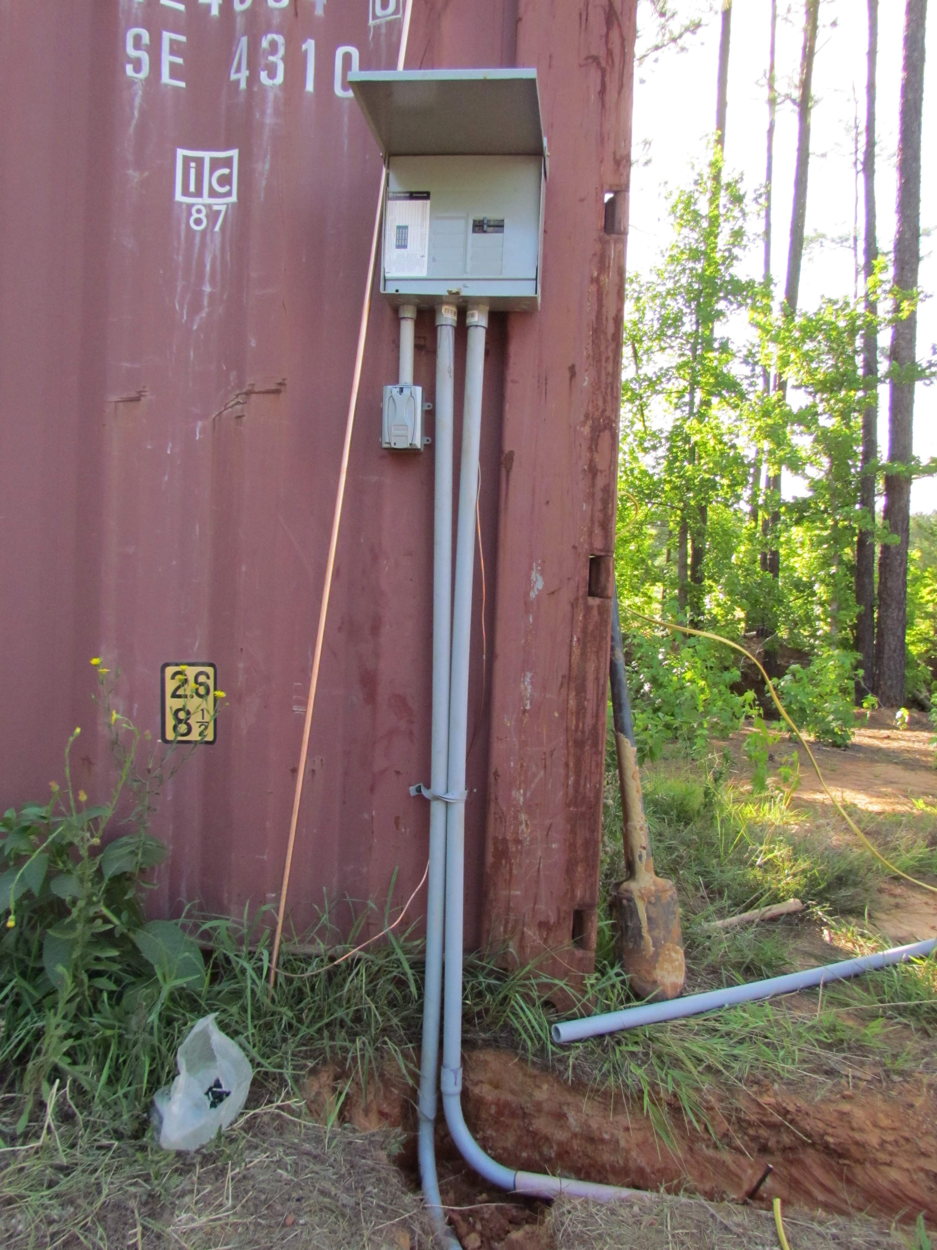 So for fun, and because it was 105 degrees, I ran power out to it. Back over the winter, I installed an RV Pedistal for my parents RV. I ran 100 amps from my second panel in my shop, out to a 50 amp breaker in their pedistal and sort of quit there. Today I trenched 100 feet to my sea container where I put in a sub panel. Then from there I trenched 230 feet to my gazebo. It has a dedicated 20 amp line for the lights and two outlets.