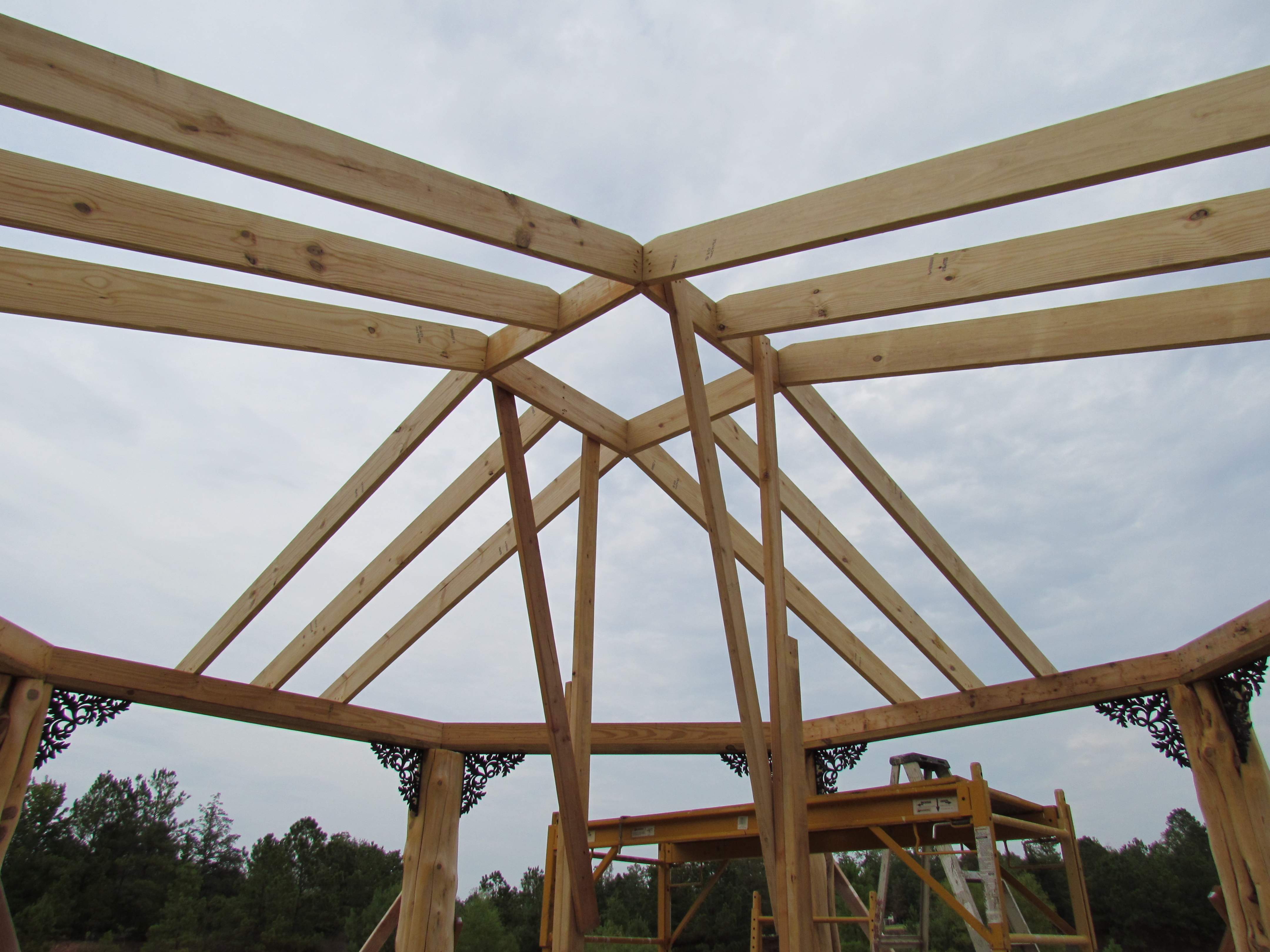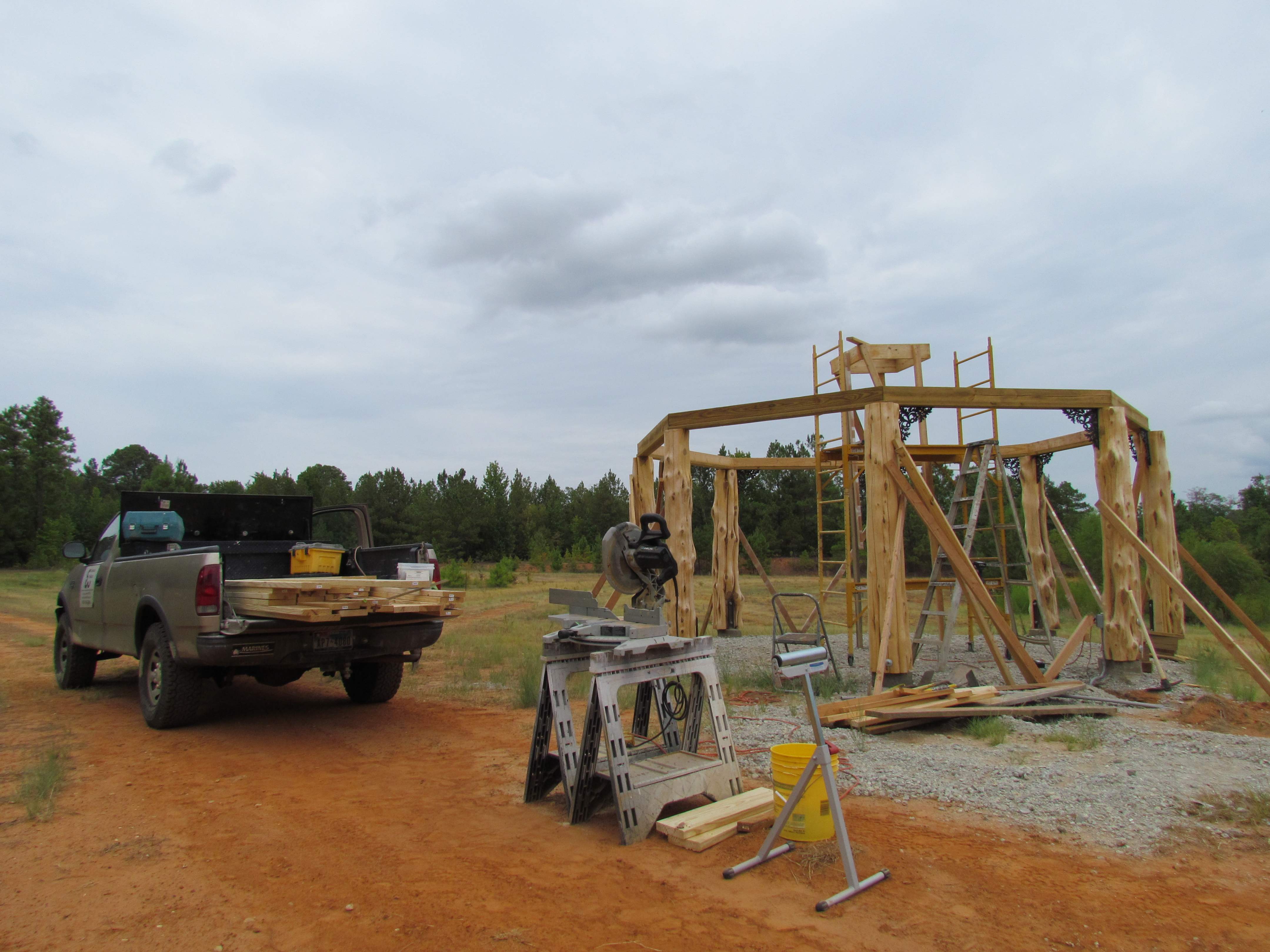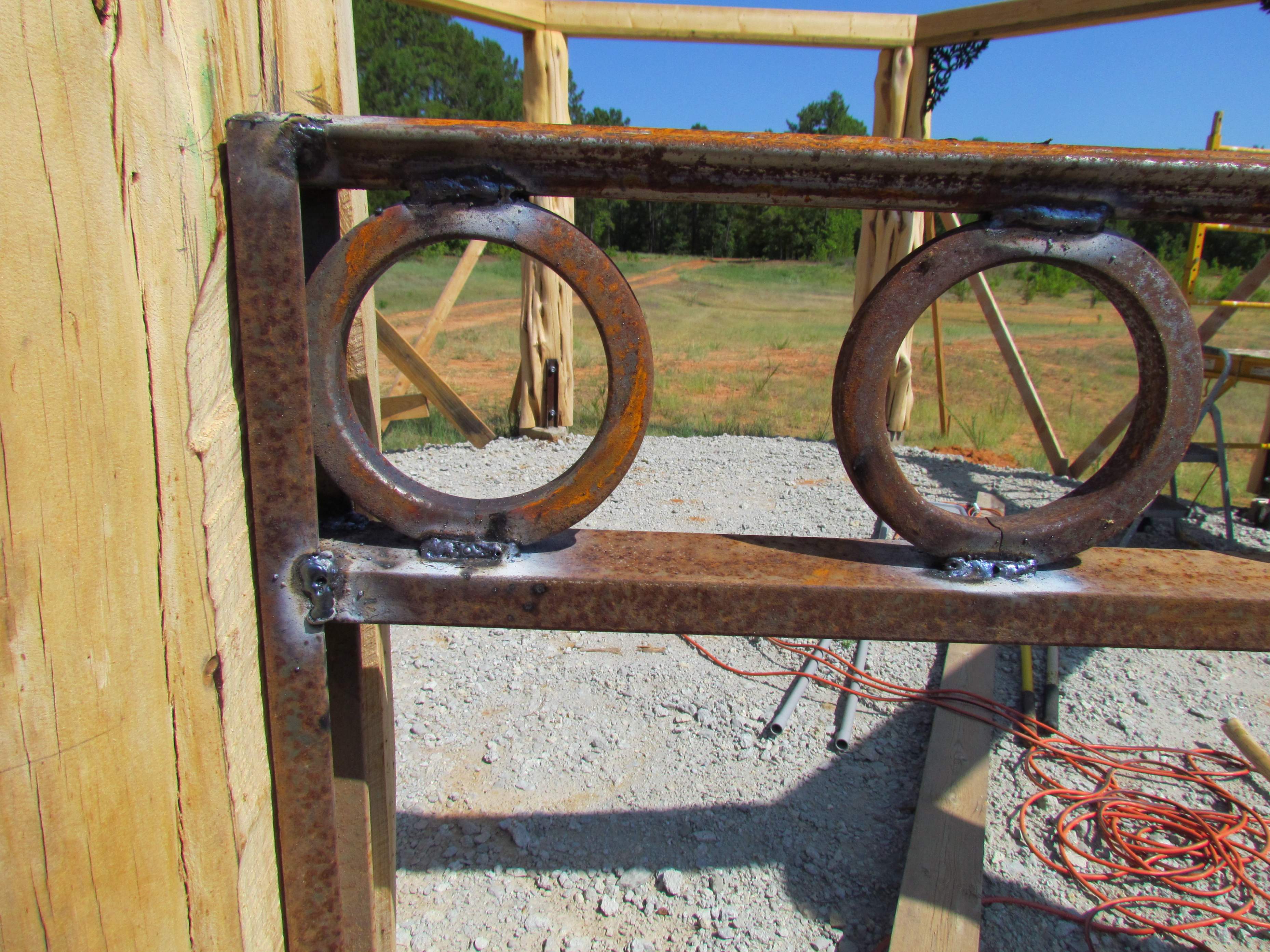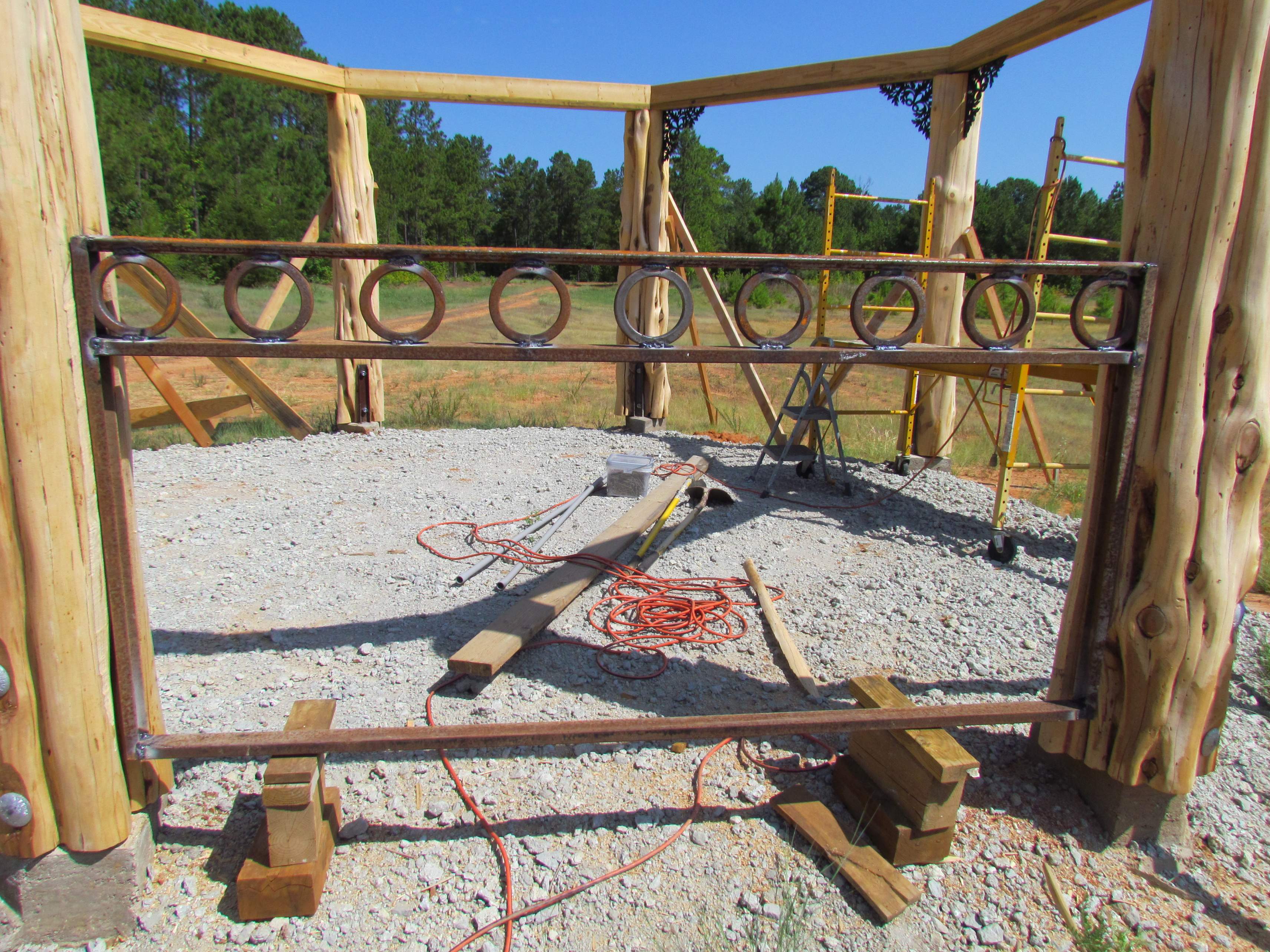 Right now I've been sandblasting the brackets that I'm using to brace the tops of the posts. Before I could install them, I had to trim and sand the posts to get a 90 degree angle to fit the brackets into place. Then I drilled four holes into the brackets, sand blasted them, primed them and painted them. It's a slow process that is painful because of the heat. 18 days in a row of 100 plus temps!!!
