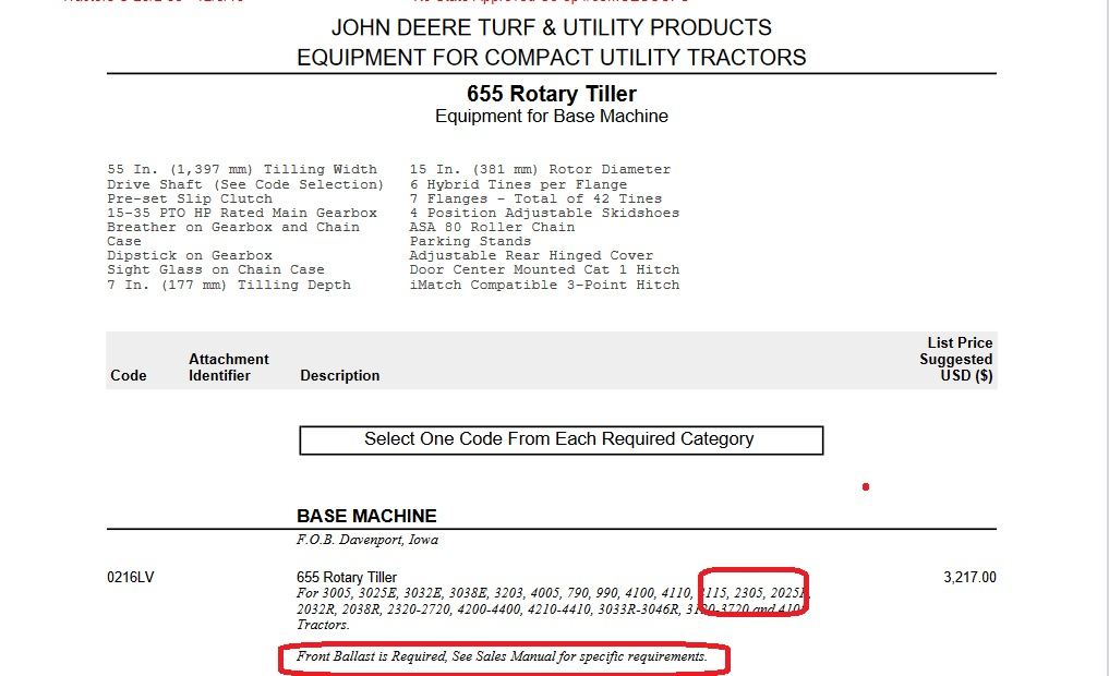 The smallest rental tiller I can find in my area is a 55in JD 655.