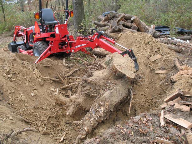 Holy cow! That's a stump! Looks like this tractor will work just fine. Next question: what constitutes "good deal"? I was offered on for (his off the top of his head price) $16500. I was then informed I could get a $2000 discount from that figure if I paid cash.