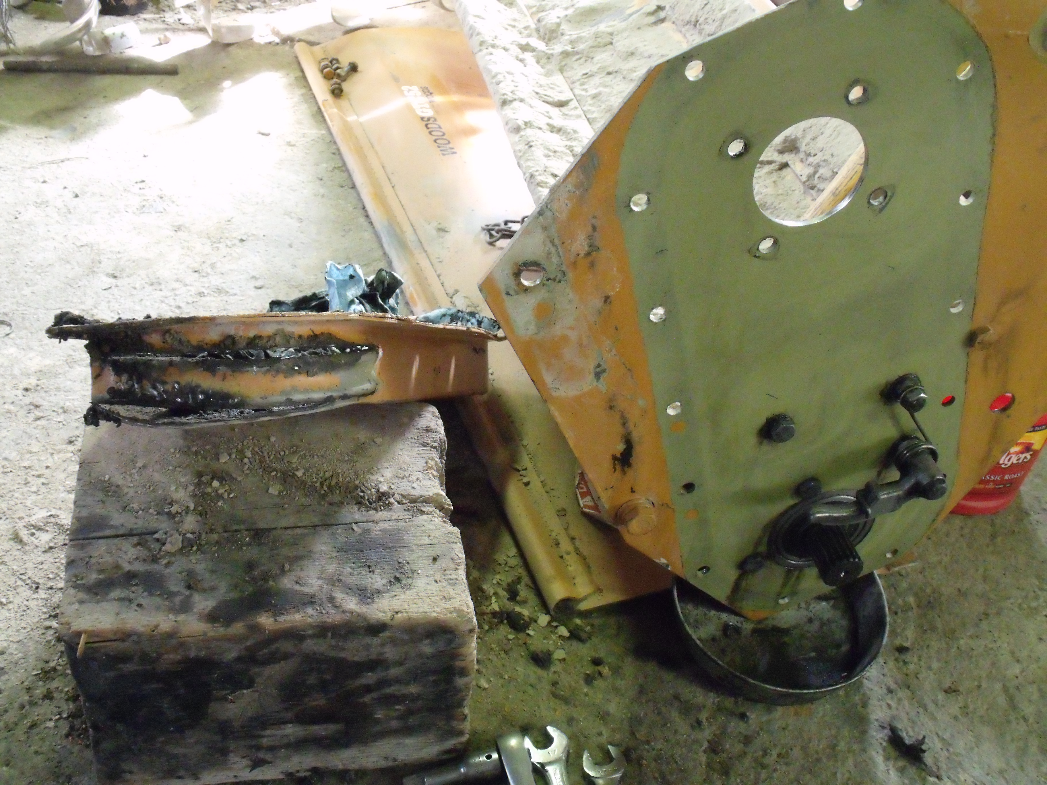 Chain worn threw the side cover was the last straw for this woods 3pt tiller. Loss of oil from crap wrapping around output on the tine torque shaft ruining the seal was the main culprit. That stringy looking thing by the bearing in the pic is twine, vines and other stuffs that killed the seal, then bearings, chain, side cover and down time.