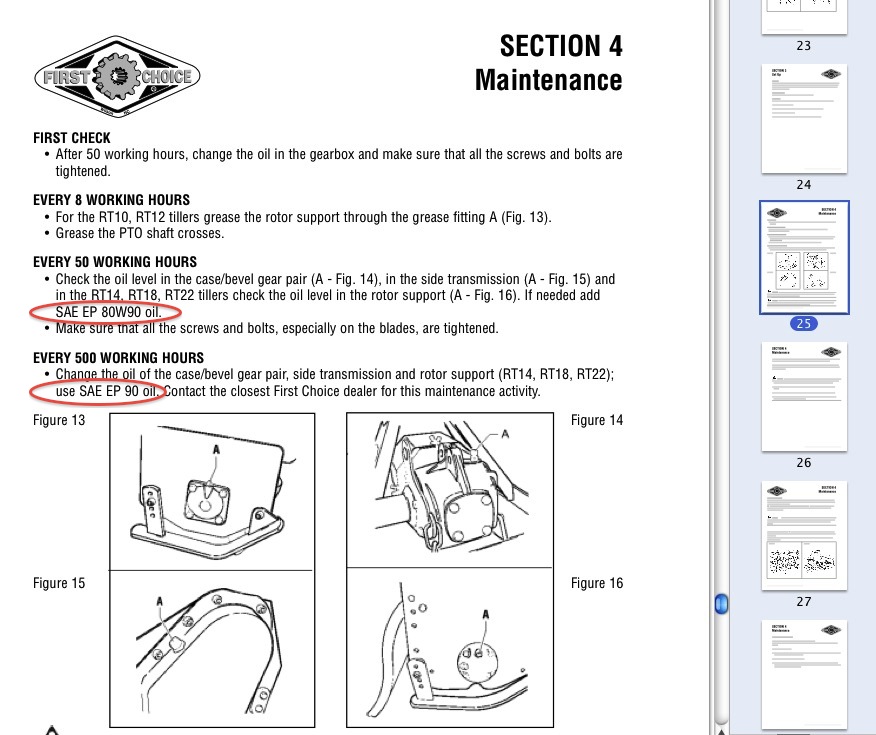 Hi guys. I need to know how much gear oil to put in a First Choice RT04-60 tiller gear box. I have searched on line but can't come up with the answer. I have the owners manual but it just says change it and nothing about how much and weight. Thanks