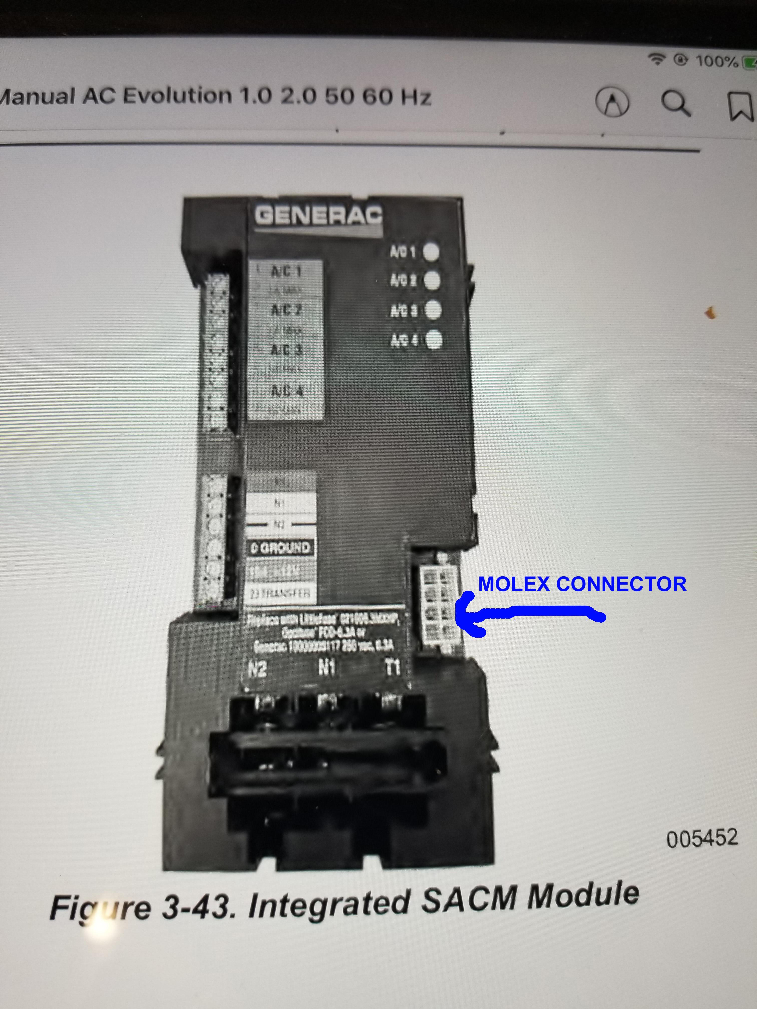now, if you have the newest version of the transfer switch. there is a molex connector on the SACM board. If you simply unplug this you are killing all N1, N2 and T1 power to generator. you wont need to kill house power. MOLEX copy.jpg