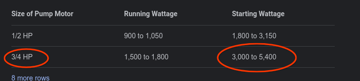 Hmm, I don’t have my 20 amp breaker popping normally for my well pump so 6000 should be fine I would think.