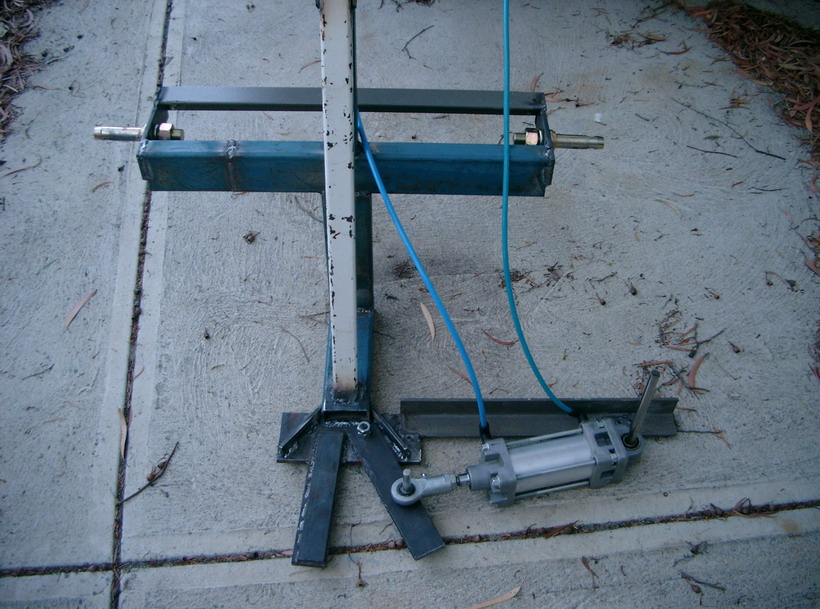 I have a problem with trees that have become a weed and I cannot pull them by hand. I do not have spare hydraulics but do have pneumatics. The theory is that the 2.5" cylinder and 30 psi should give around 120lb pressure to the ram and the tree at the bottom of the V should then have around 250lb push on the trunk. The 3pl would then lift.