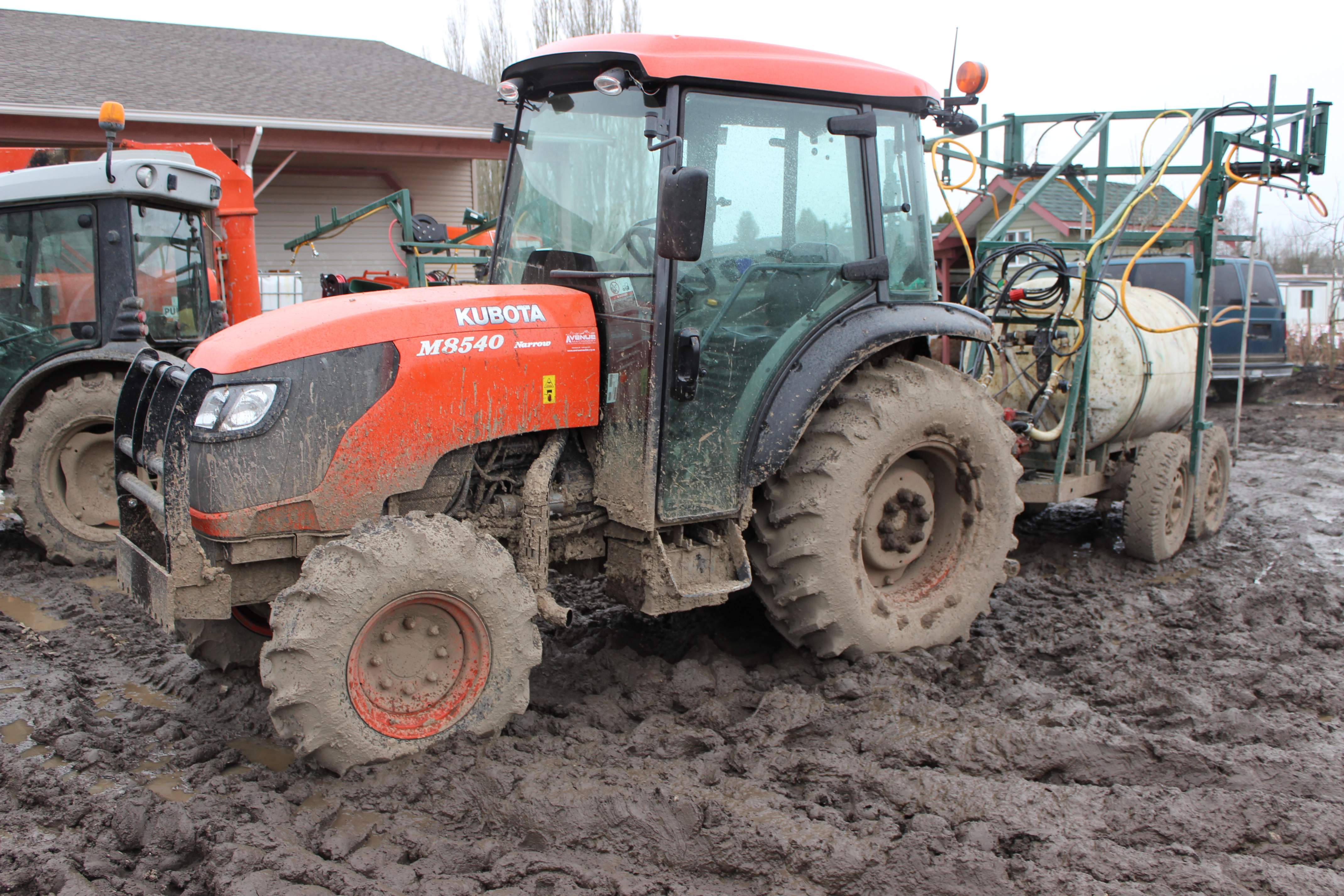 A few pictures i took before i started spraying. It is a Kubota M8540 narrow tractor pulling a custom built 300 gallon sprayer created for blueberries. I sure am loving the new kubota, it is a pleasure to operate!