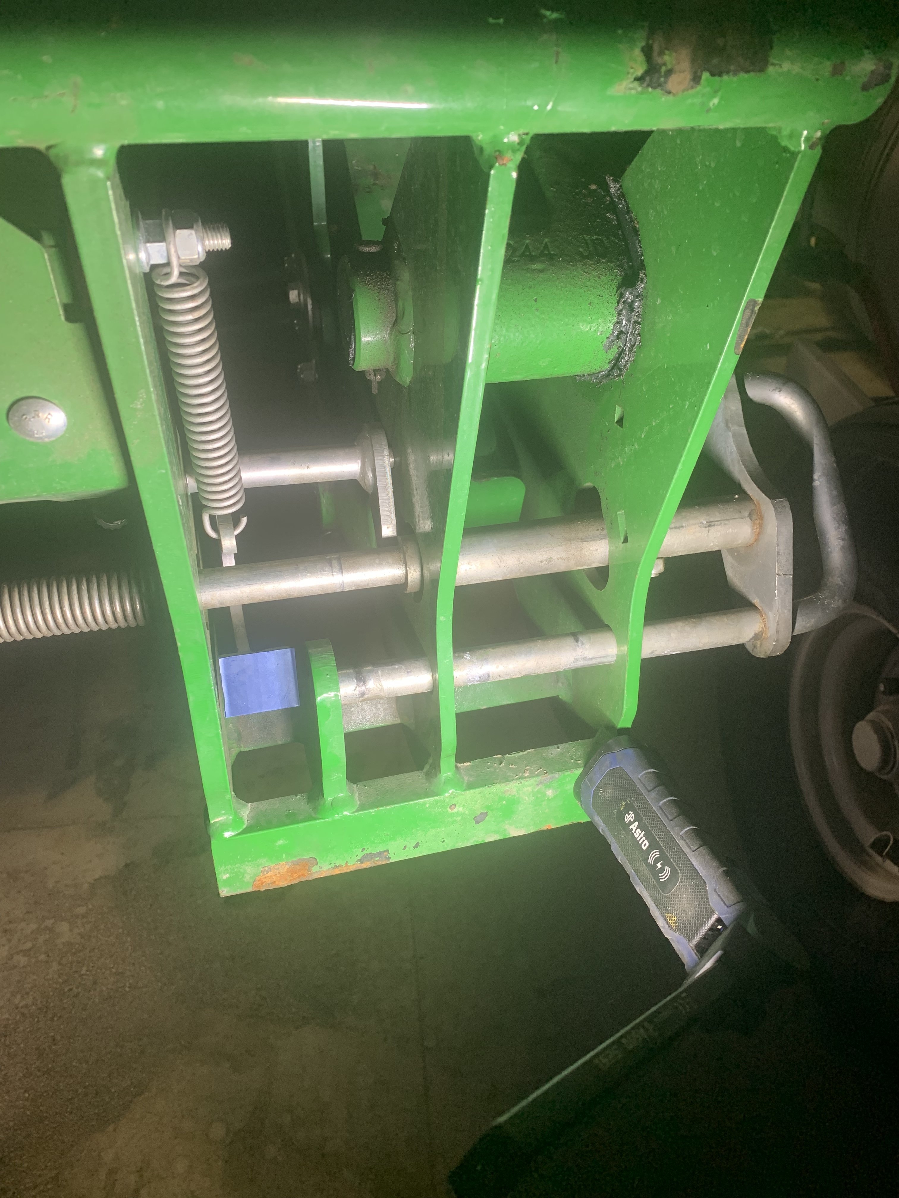 That sounds very similar to the style of auto lock on my 540R loader . Ear on attachment pushes the lever disengaging the J hook. 540M uses a different trip style, both work excellentThe PUMA and NH when we unlatch them we pull the lever and it engages in a hook, we dump that attachment off pull up to the other catch the top hooks with the carriage still curled down quite a ways, then lift and curl back at that point the attachment bumps the latch on and the springs push the pins into place.