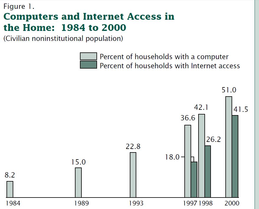I just did a little research to see how many homes have computers. Here's an older chart that ends in 2003, the latest figures I found, you may be able to do better, is 68% of American homes had computers in 2010.