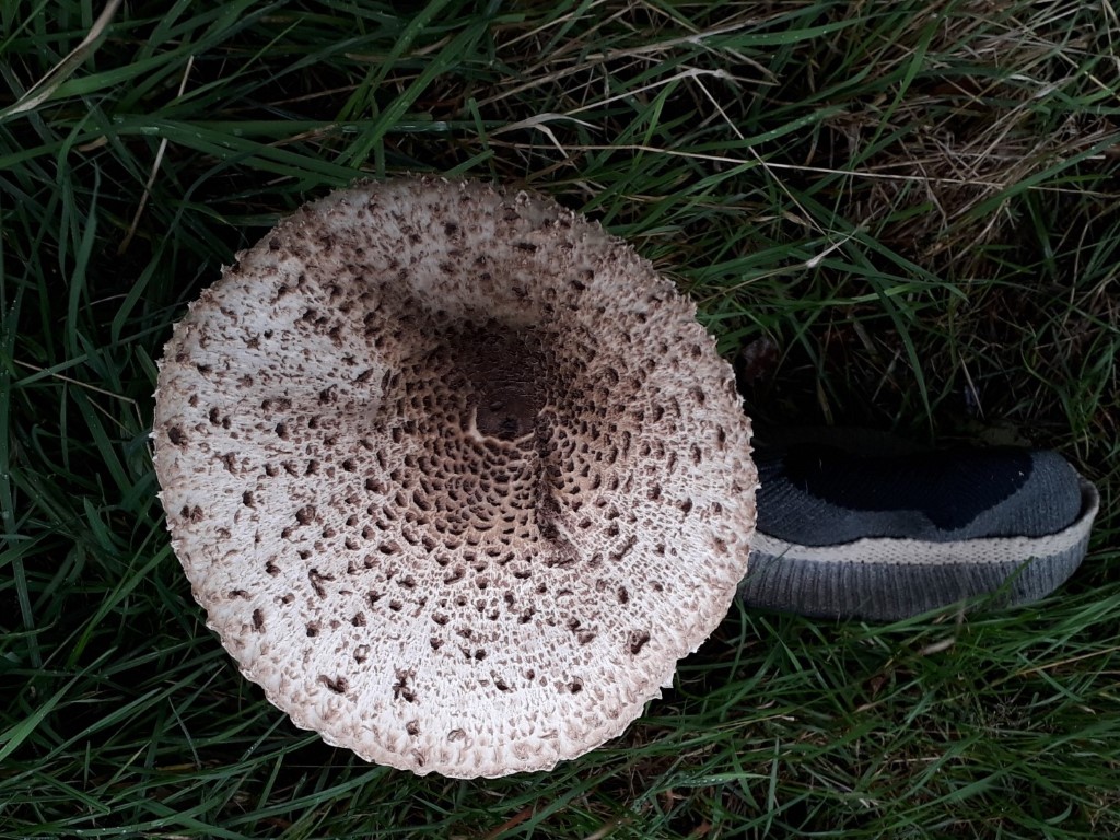The parasol mushrooms are huge this year, growing from a gnarled dome into something the sheep will soon be wanting to shelter under when it rains. Ok, that's a slight exaggeration, however you can see the scale from the beanie hat I put on the ground.