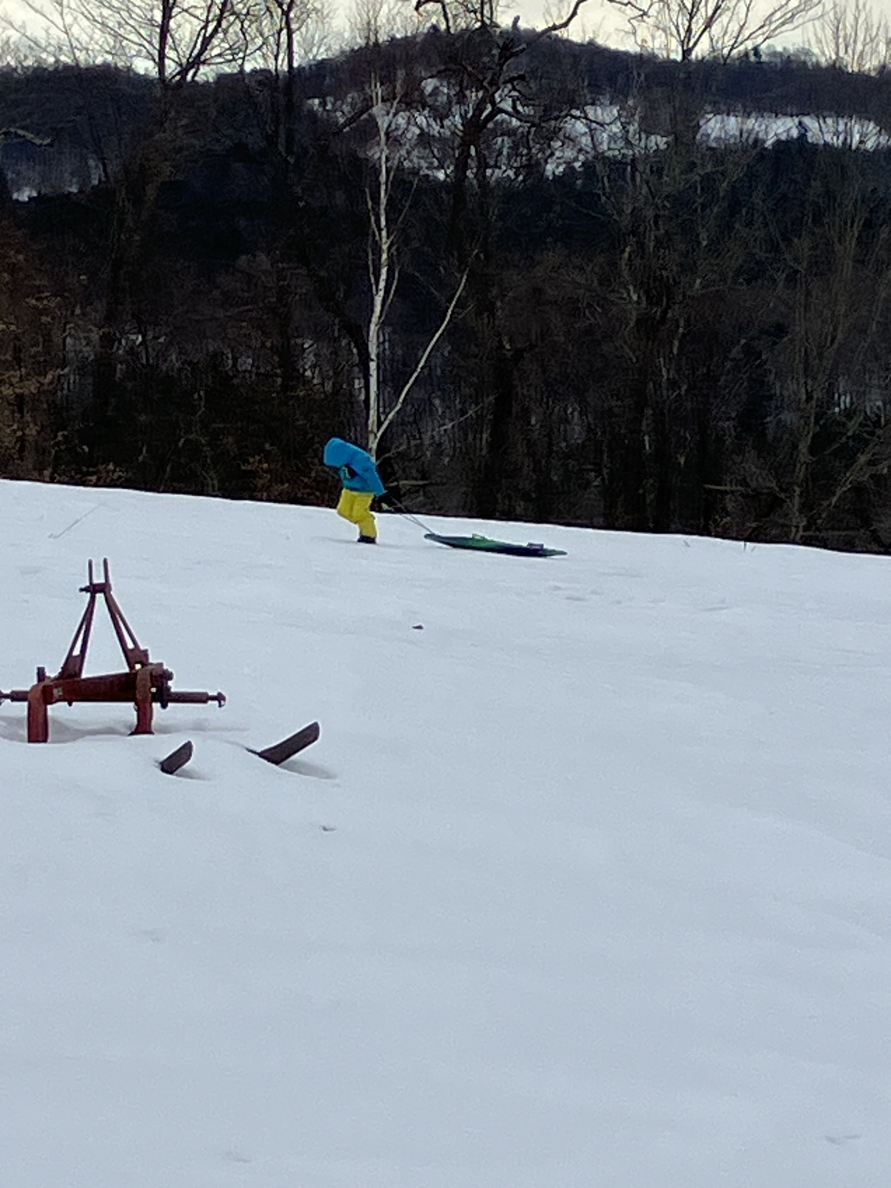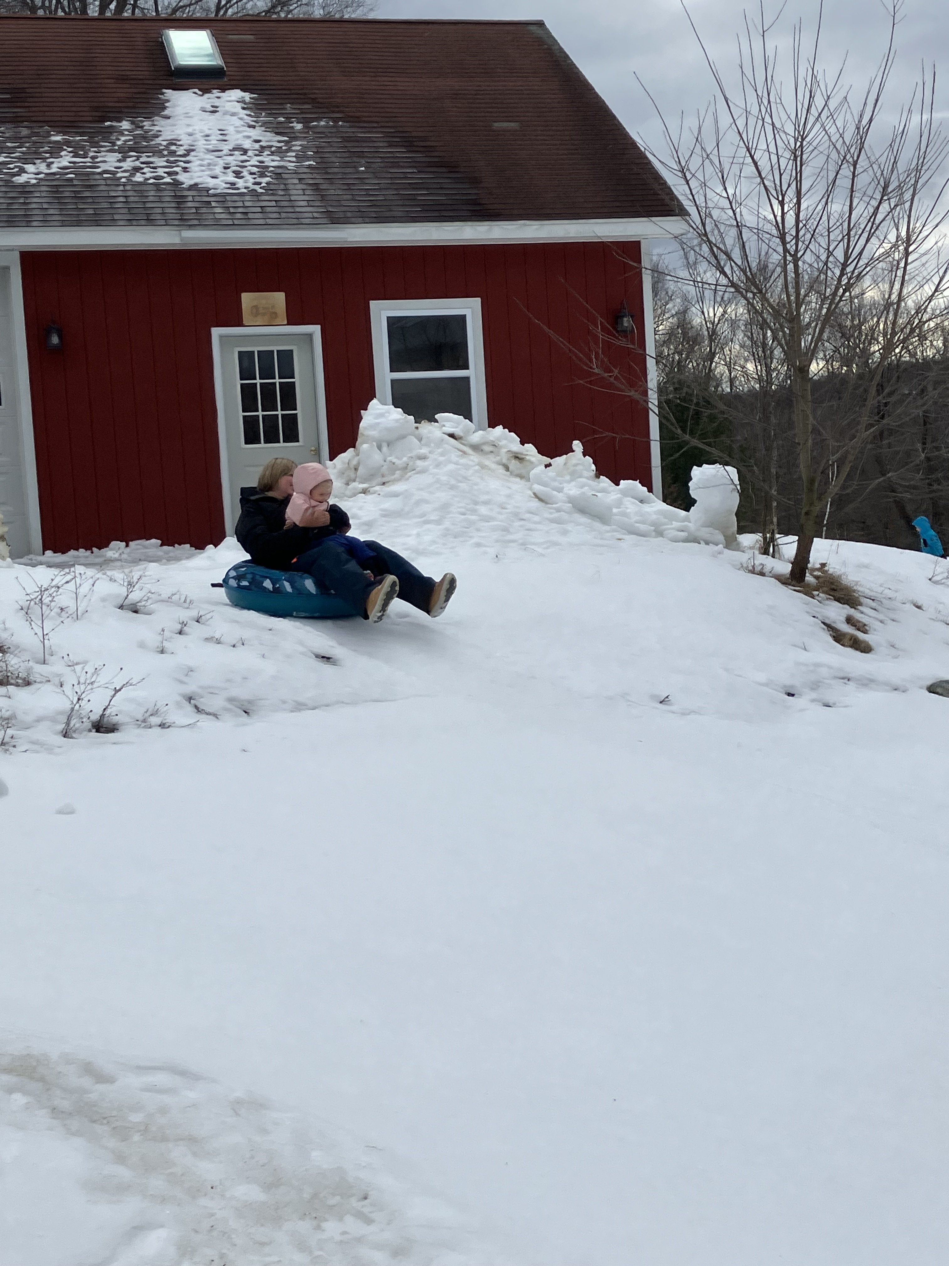 Kids went sliding out in the field this morning ! I guess that’s a good thing because it’s snowing now and temperatures will be dropping steadily throughout the afternoon!