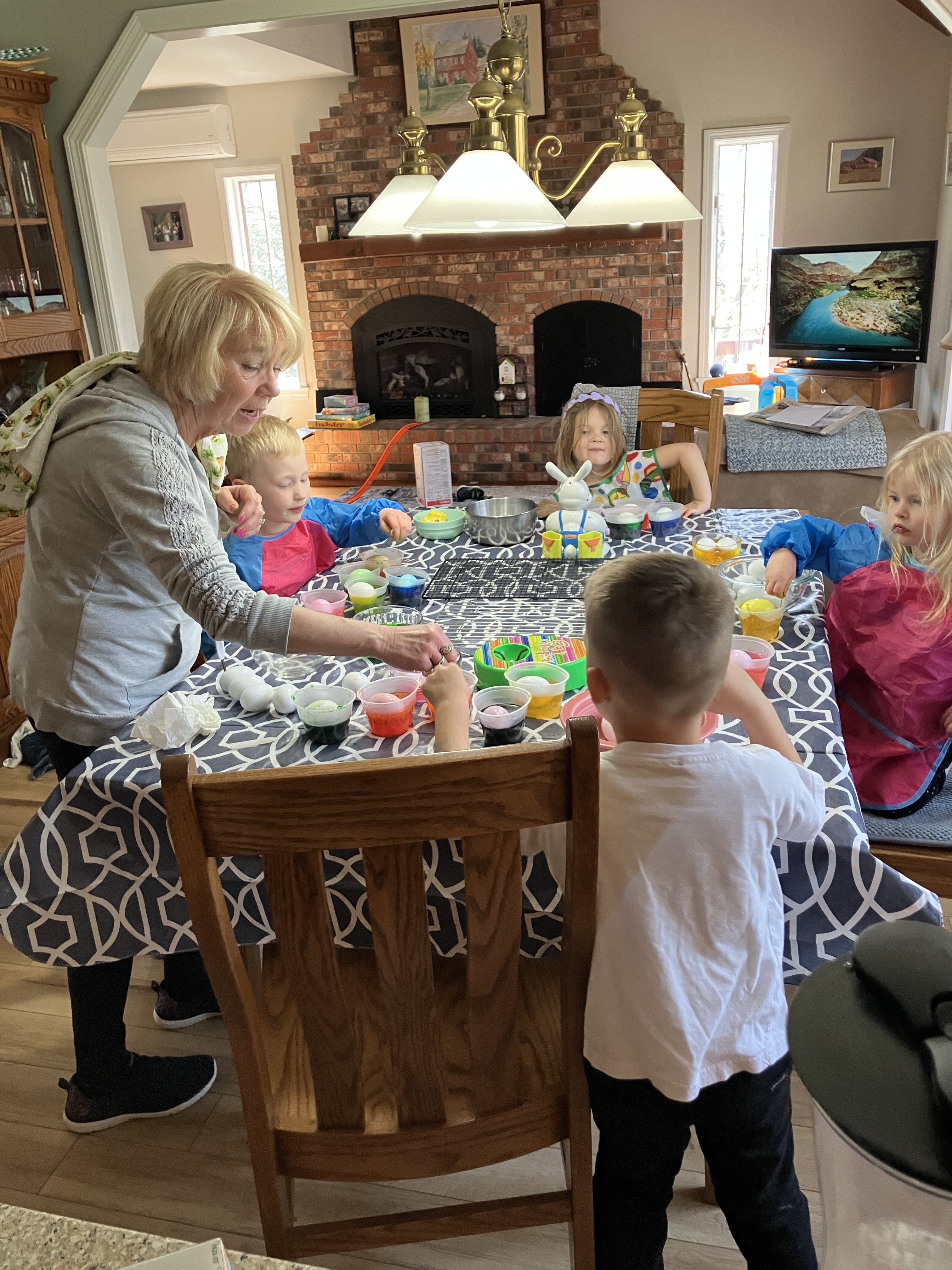 Yesterday we had all the grands over for Easter Egg coloring. Quite a time and it seems we avoided any major disasters 😉
