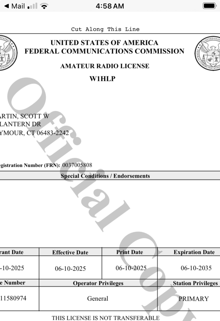 Ok, onto the big news this morning, I received an email from the FCC early this morning that my new Amateur Radio call sign has been granted 😁🙏 I am now officially